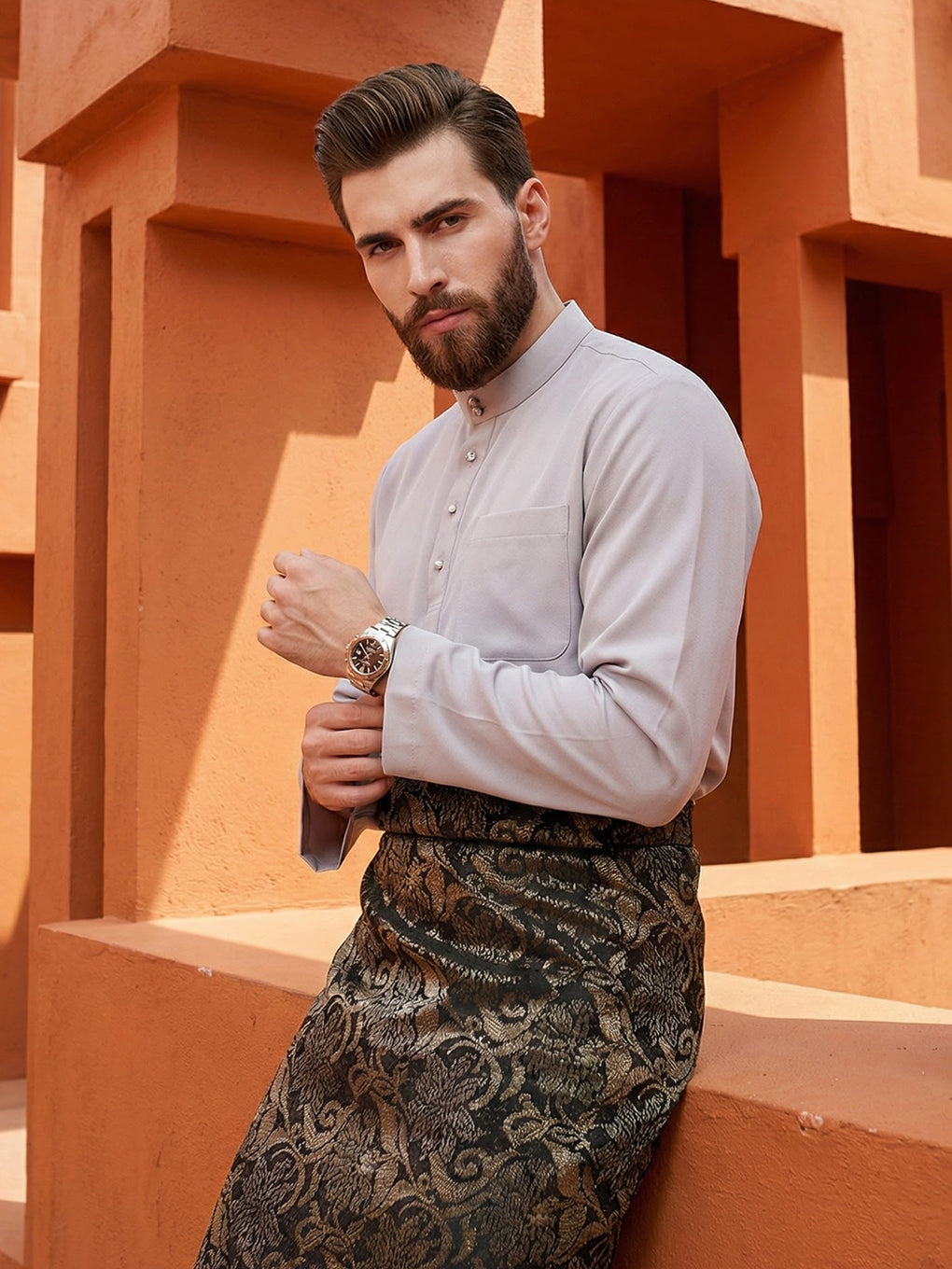 A Modern take on the classic Baju Melayu Cekak Musang  - clean lines, tailored fit, and refined details for a sleek traditional look. Perfect for Raya, Wedding or formal events. This timeless piece blends heritage with cotemporary style.
