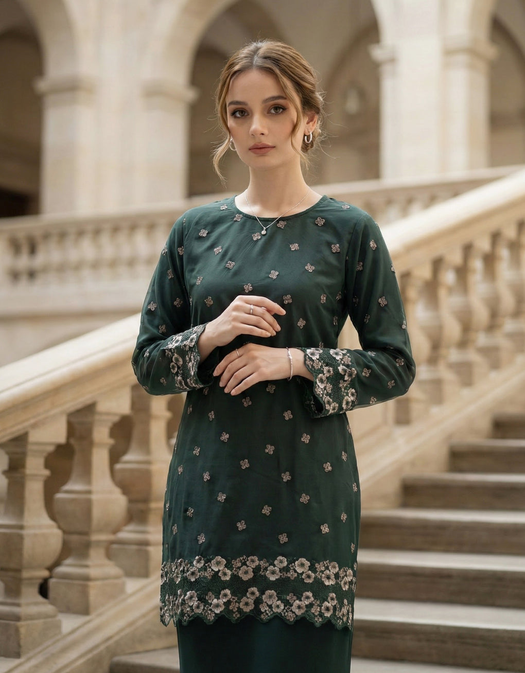 BAJU KURUNG MODEN HAIFA (EMERALD GREEN)