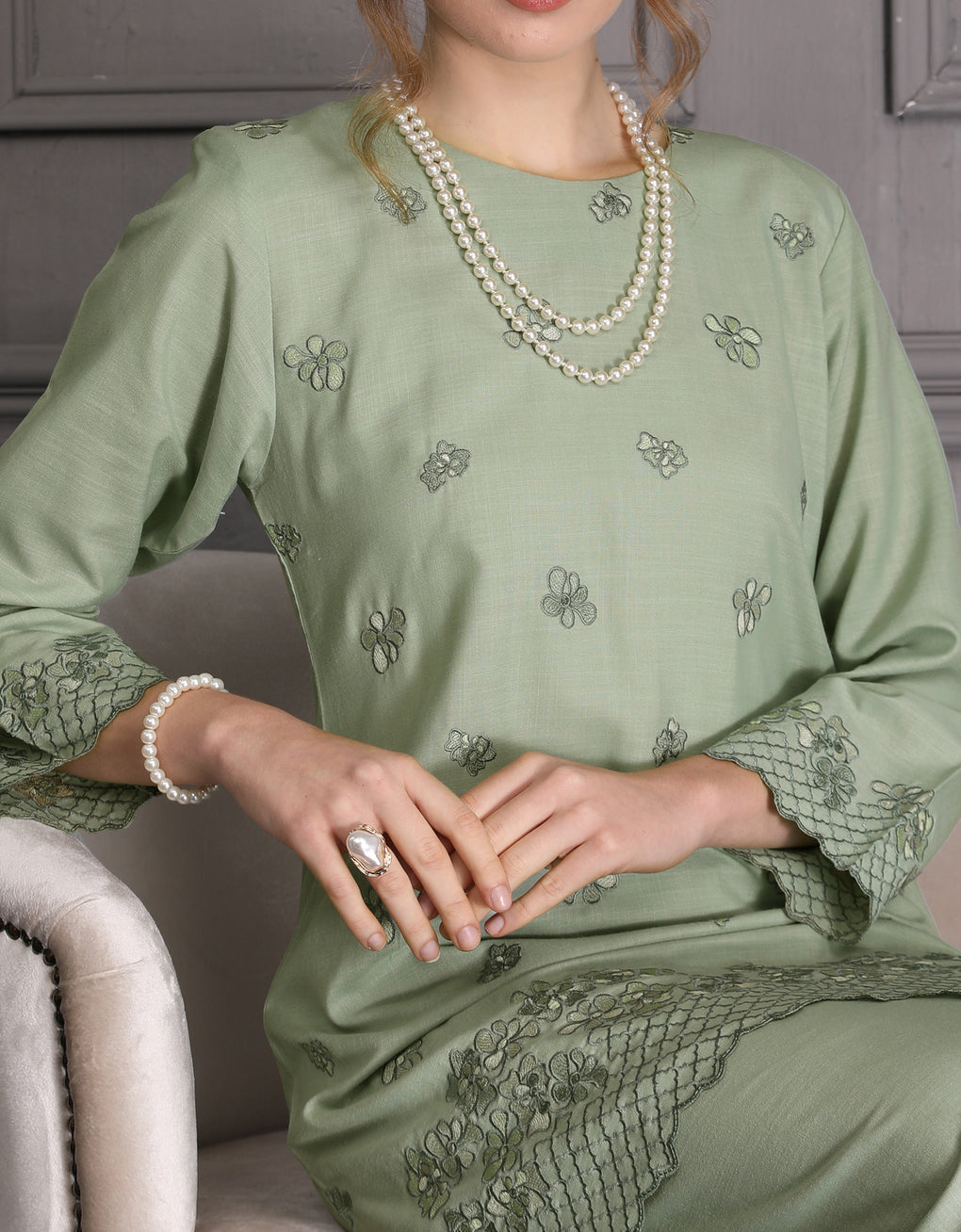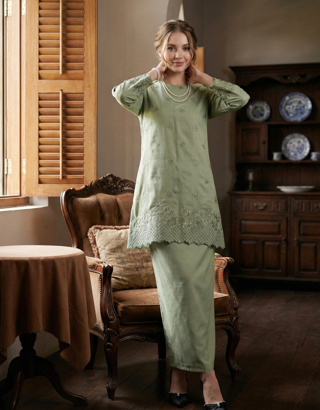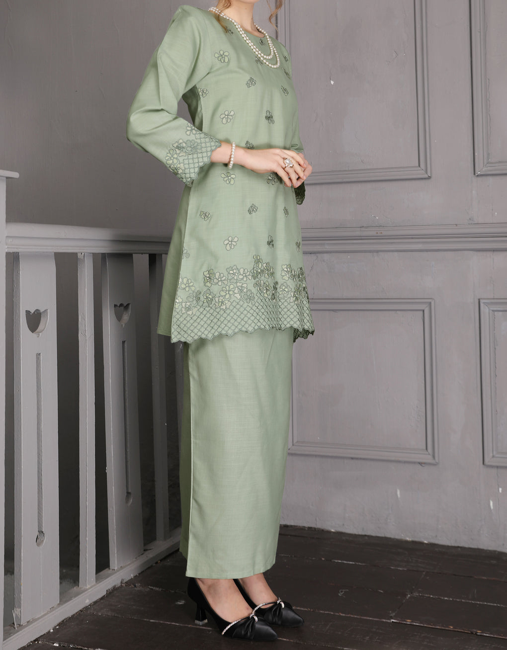 BAJU KURUNG PAHANG MODEN LETTIE (TENDRIL GREEN)
