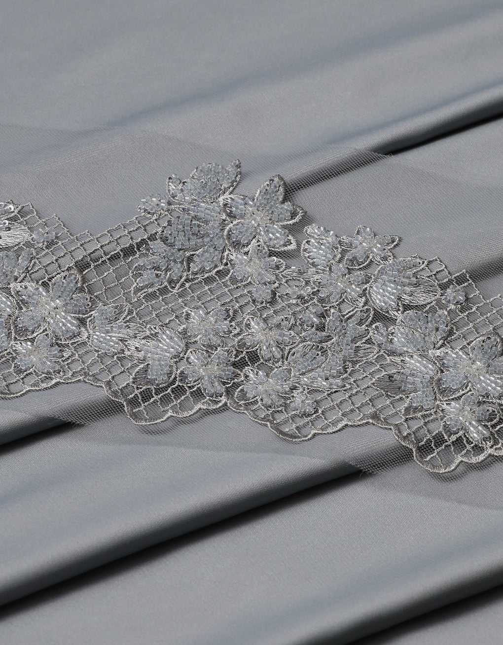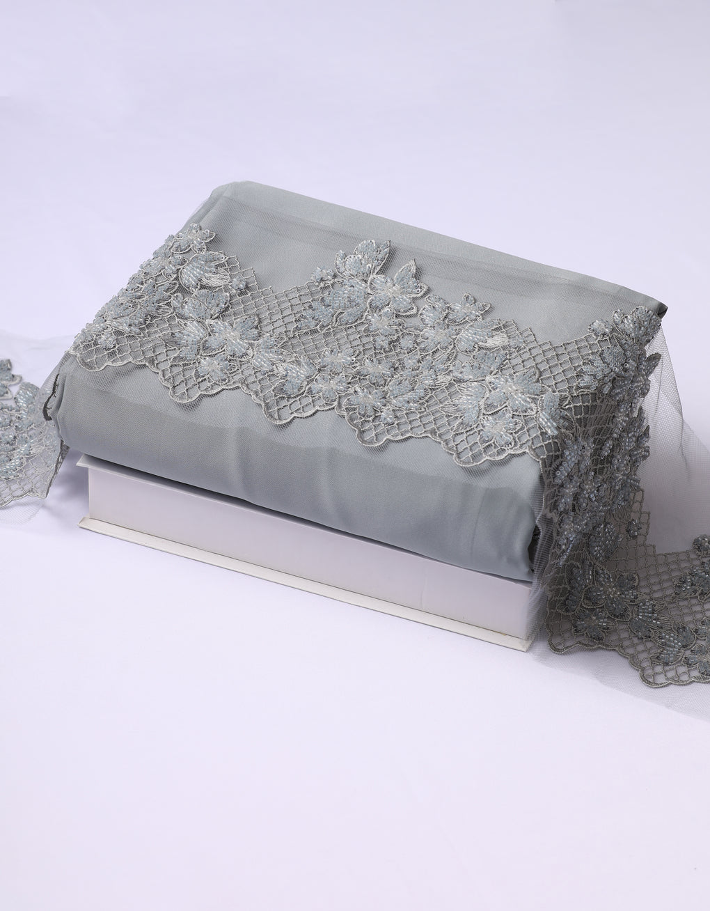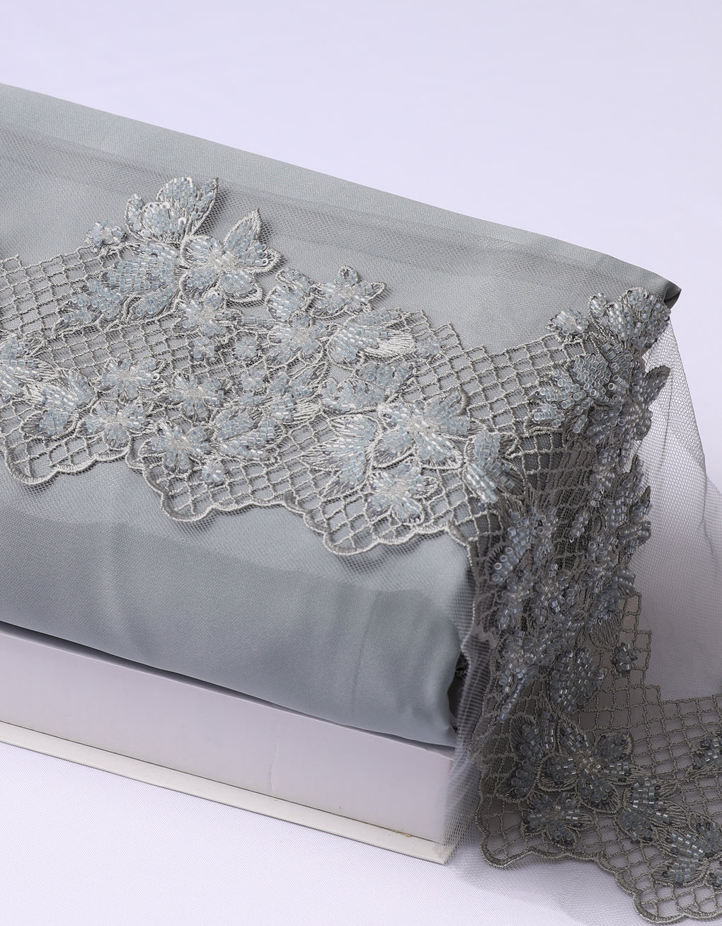 Beaded Border Lace Mix and Match - (Blueish Grey) + Satin (Grey)