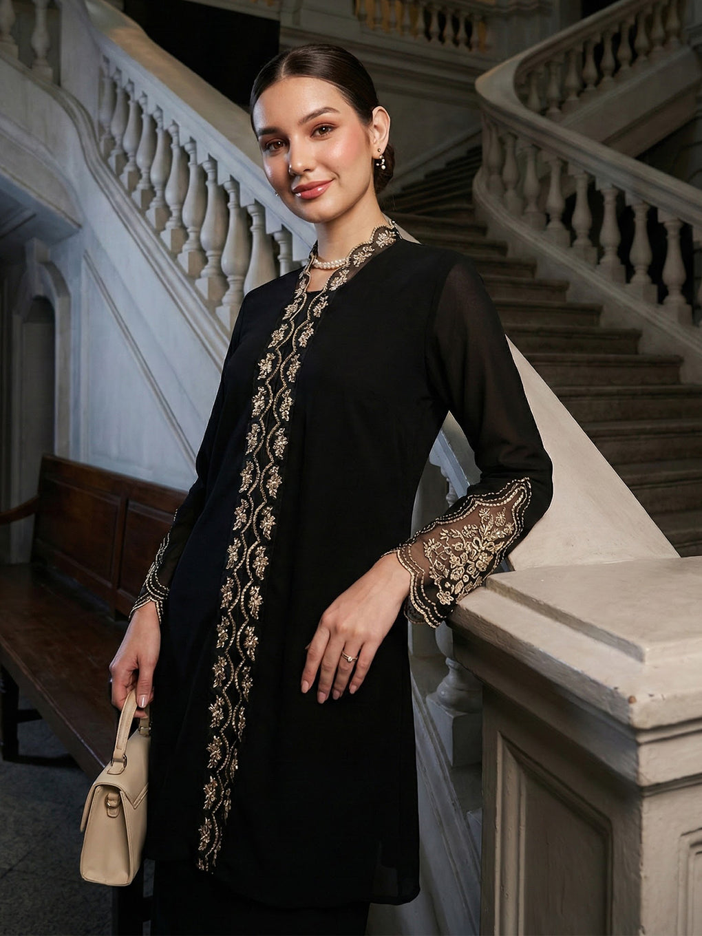 Long sleeves with Embroidered Organza