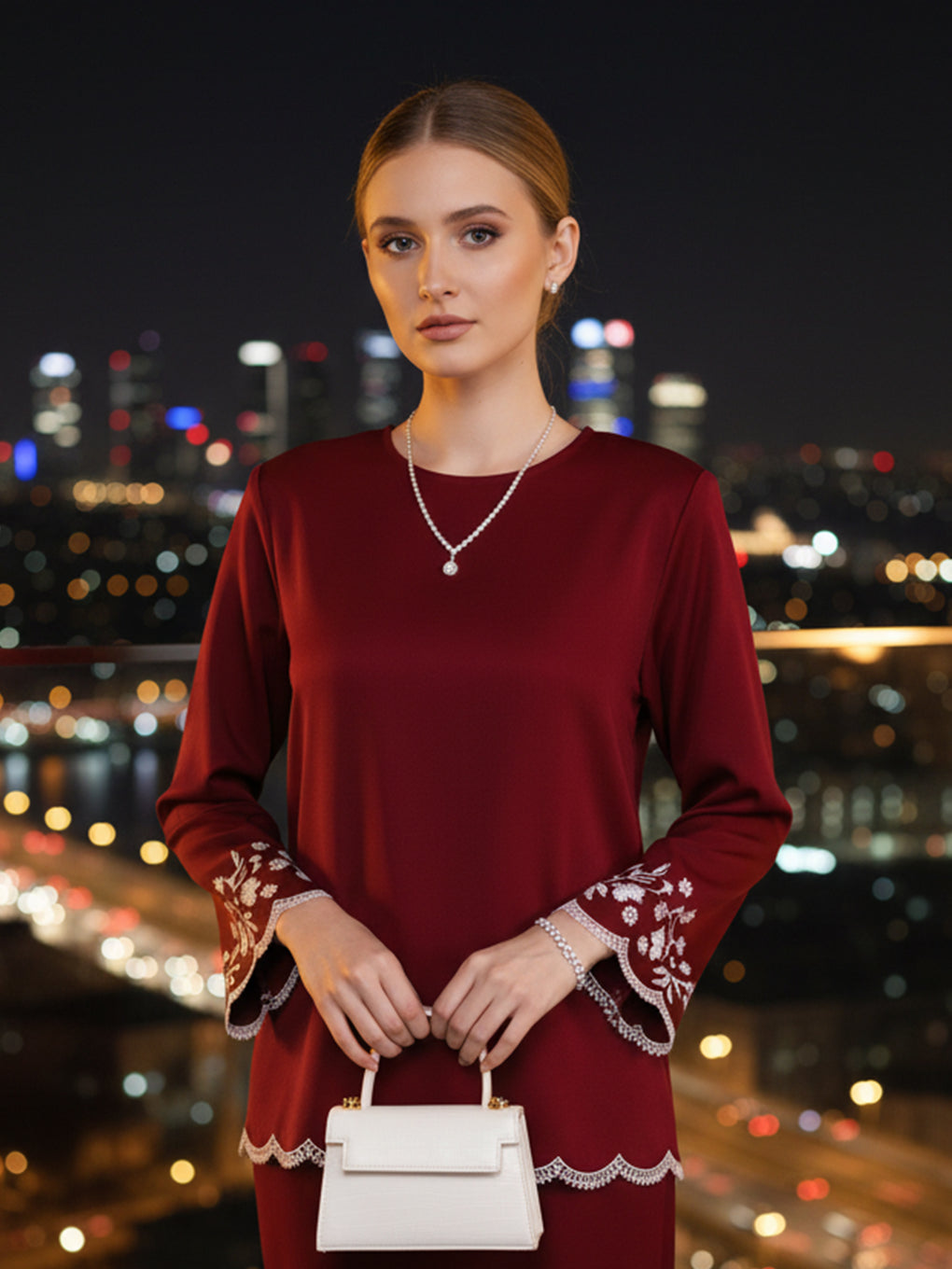 BAJU KURUNG KEDAH NAYRA (MAROON)