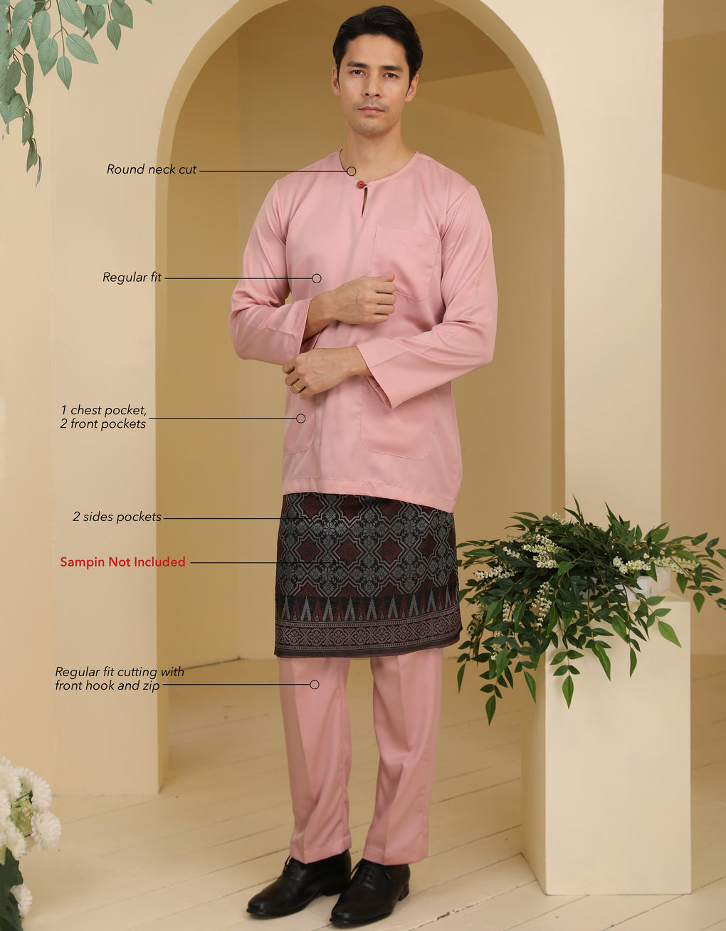 BAJU MELAYU JOHOR SRI NARA R/FIT (DUSTY ROSE)