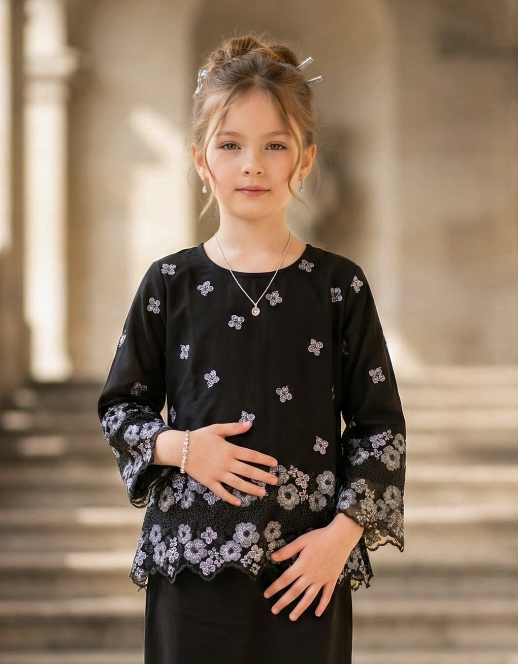 KIDS BAJU KURUNG KEDAH HAIFA (BLACK)