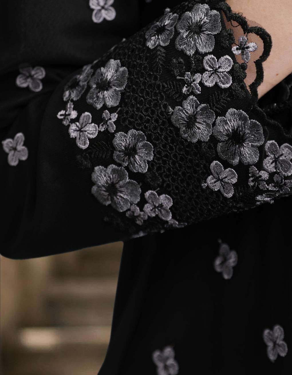✿ Finished with matching Floral Embroidered Lace at the the hem.
