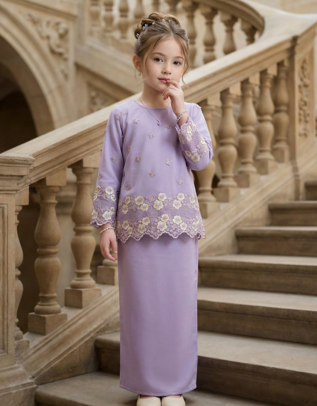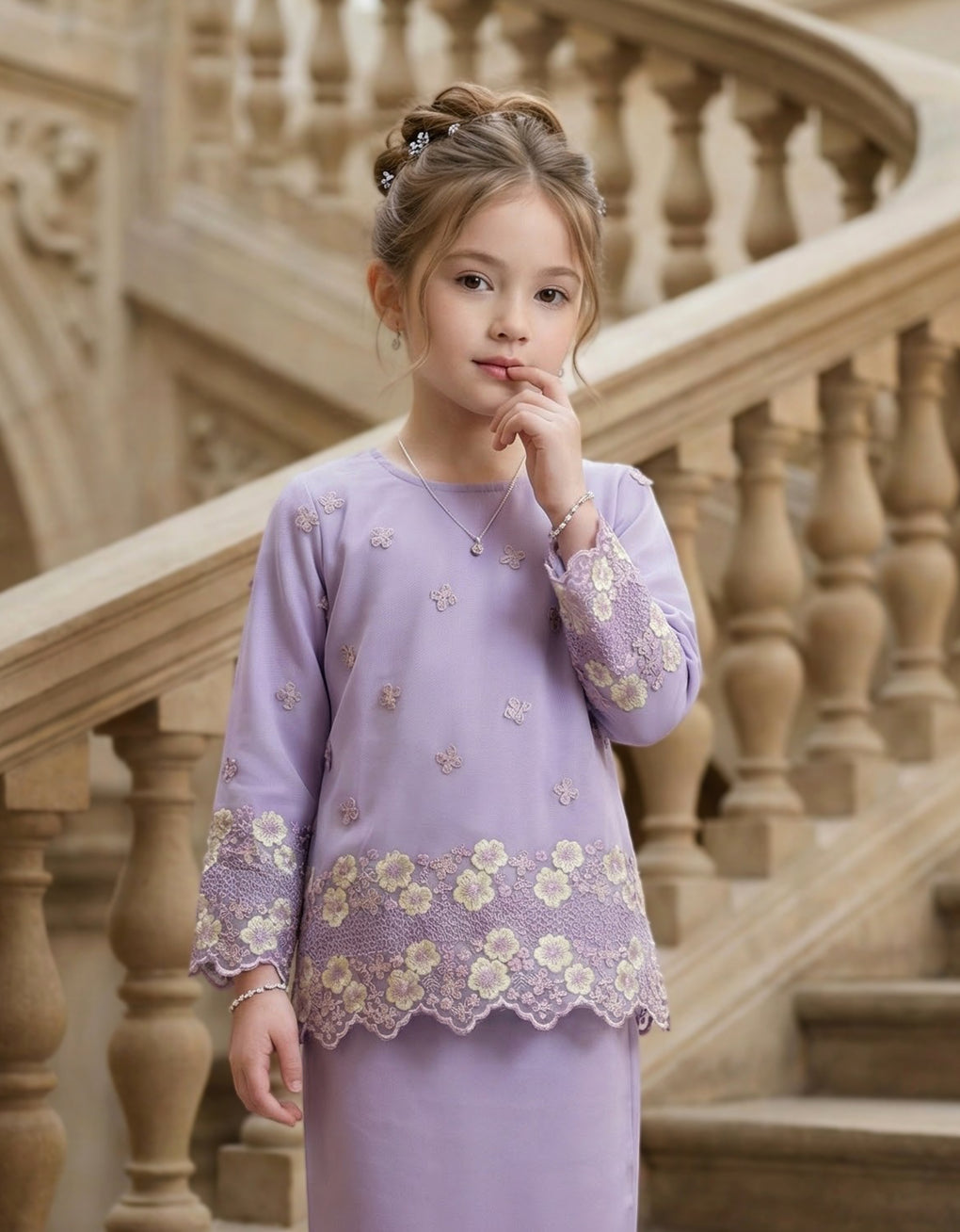 KIDS BAJU KURUNG KEDAH HAIFA (LILAC)