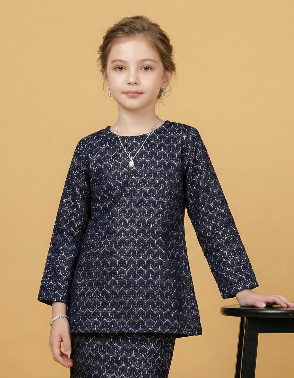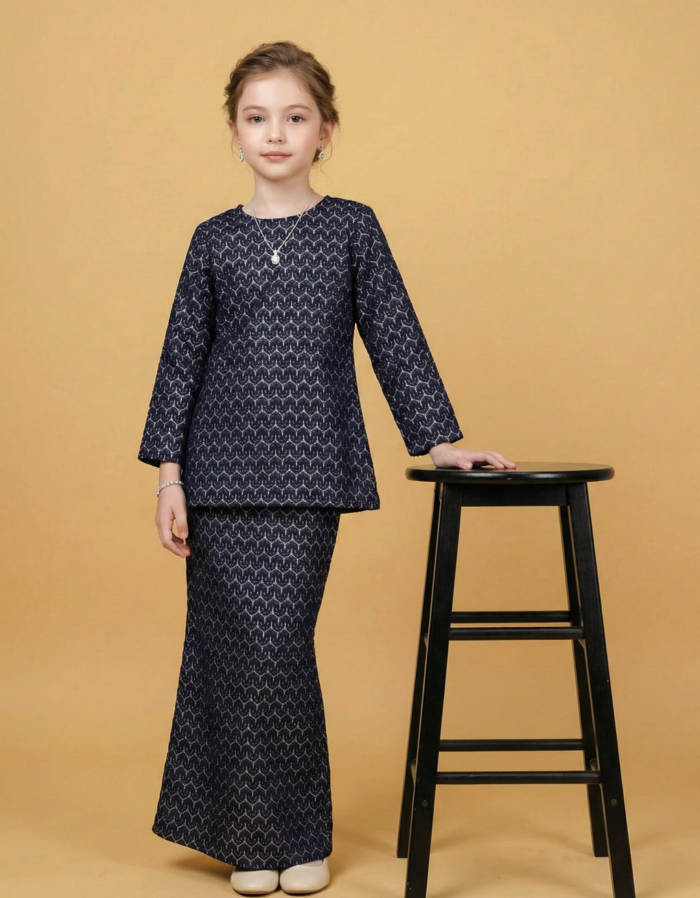 KIDS BAJU KURUNG KEDAH AILEEN (NAVY BLUE)