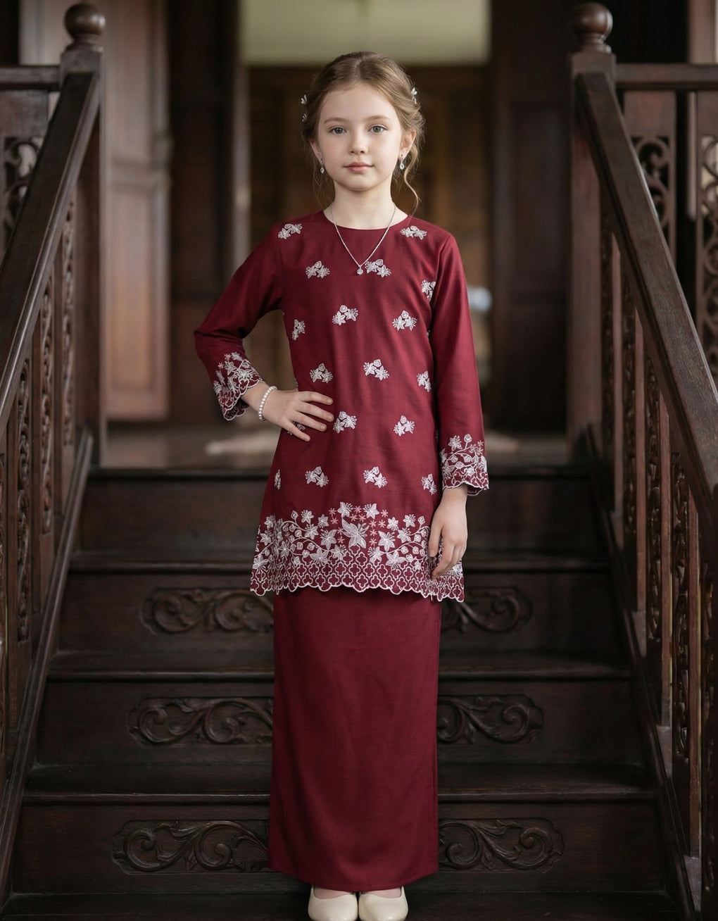 KIDS BAJU KURUNG PAHANG MODEN KAELIN (MAROON)