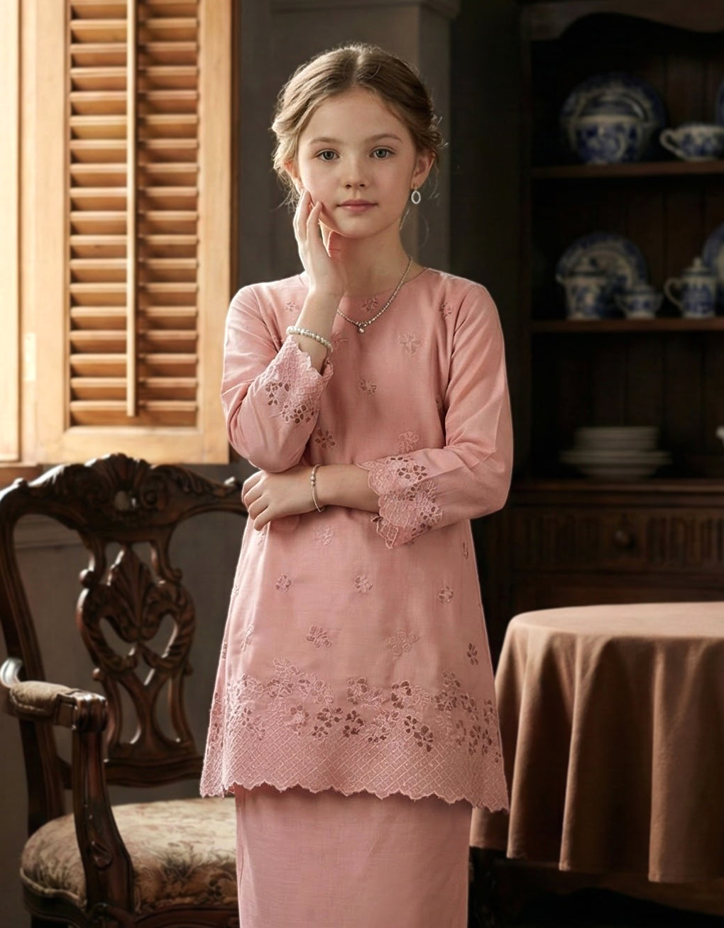 KIDS BAJU KURUNG PAHANG MODEN LETTIE (DUSTY PINK)