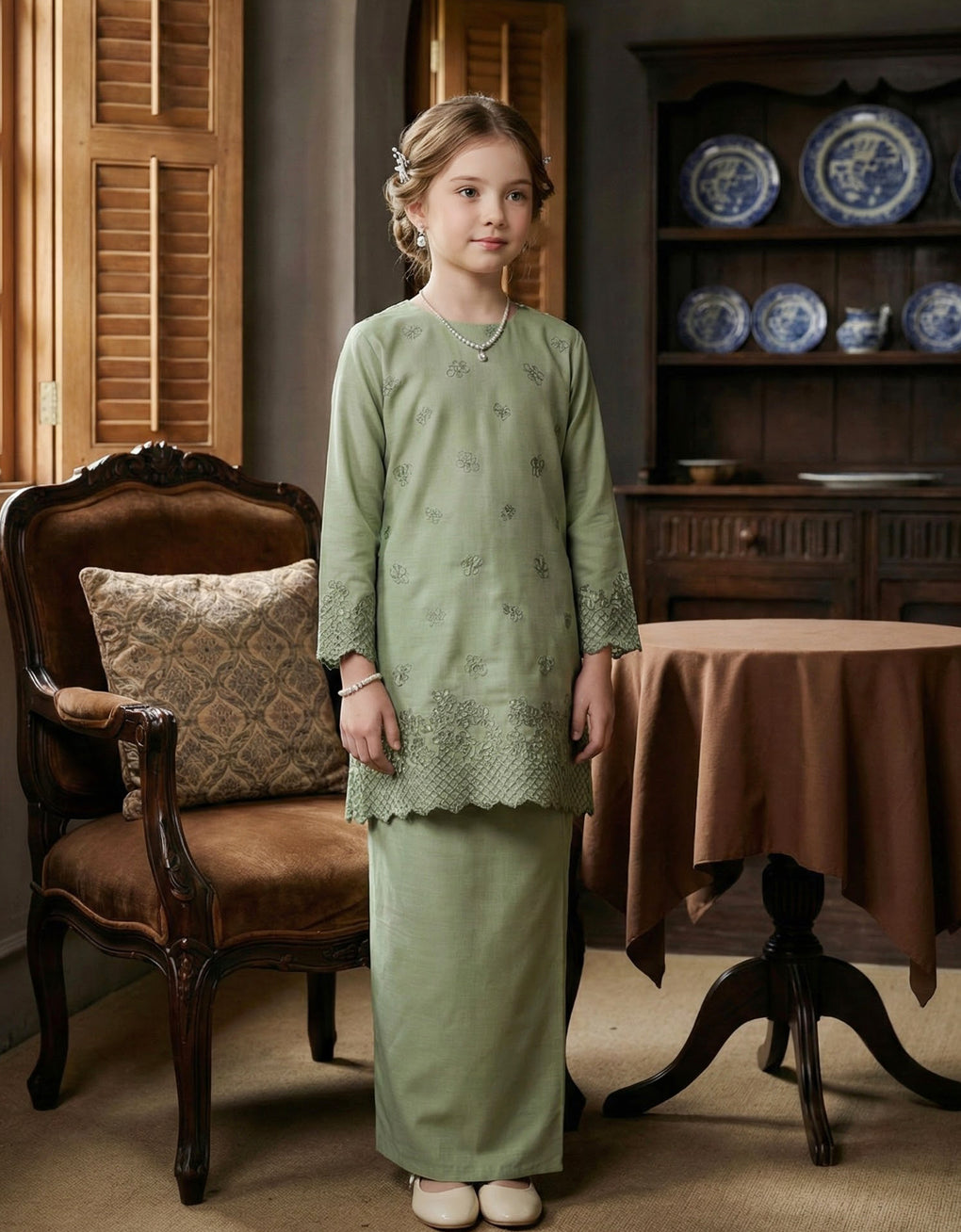 KIDS BAJU KURUNG PAHANG MODEN LETTIE (TENDRIL GREEN)