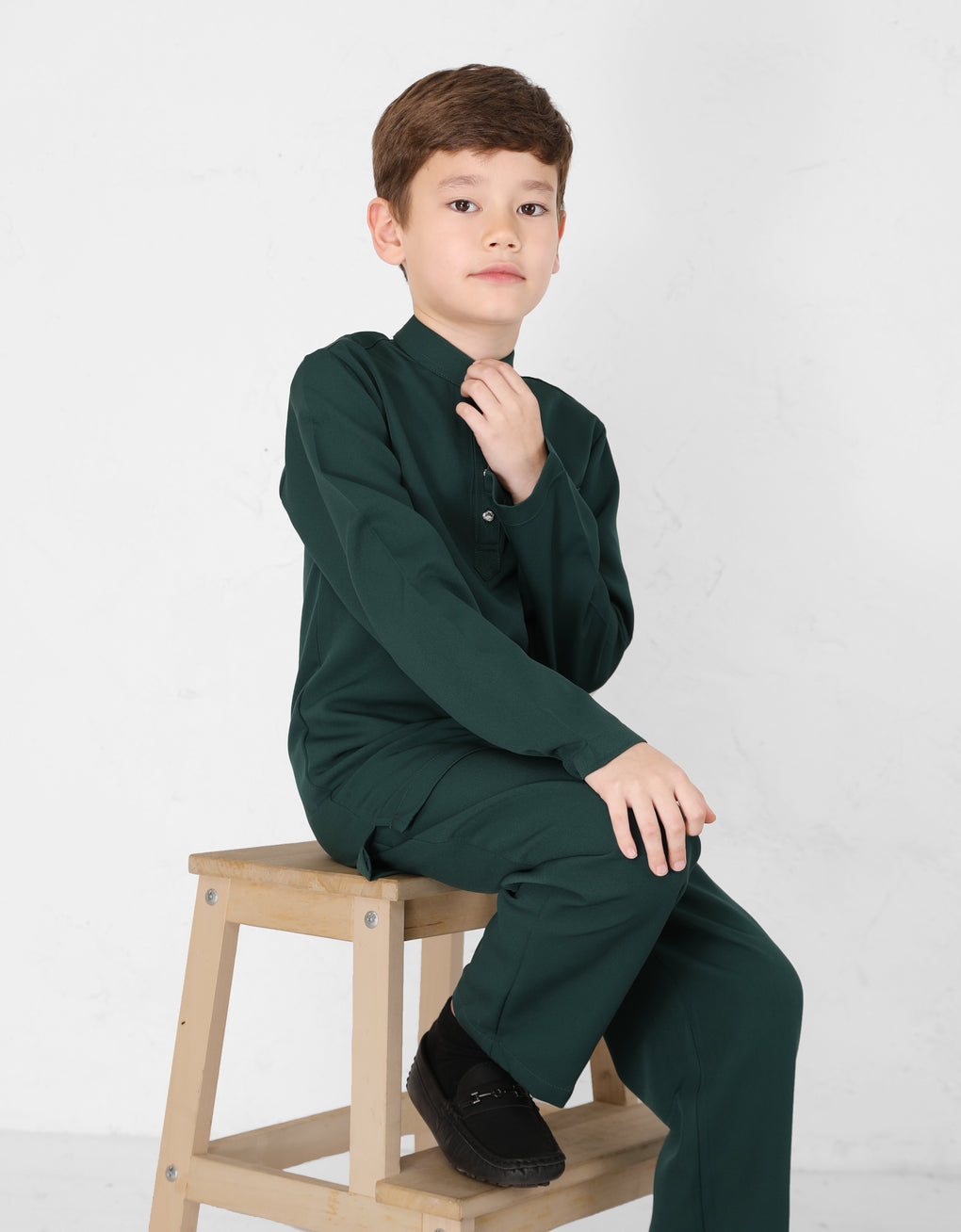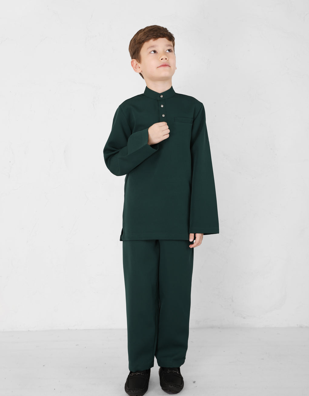 A Modern take on the classic Baju Melayu Cekak Musang - clean lines, tailored fit, and refined details for a sleek traditional look. Perfect for Raya, Wedding or formal events. This timeless piece blends heritage with cotemporary style.