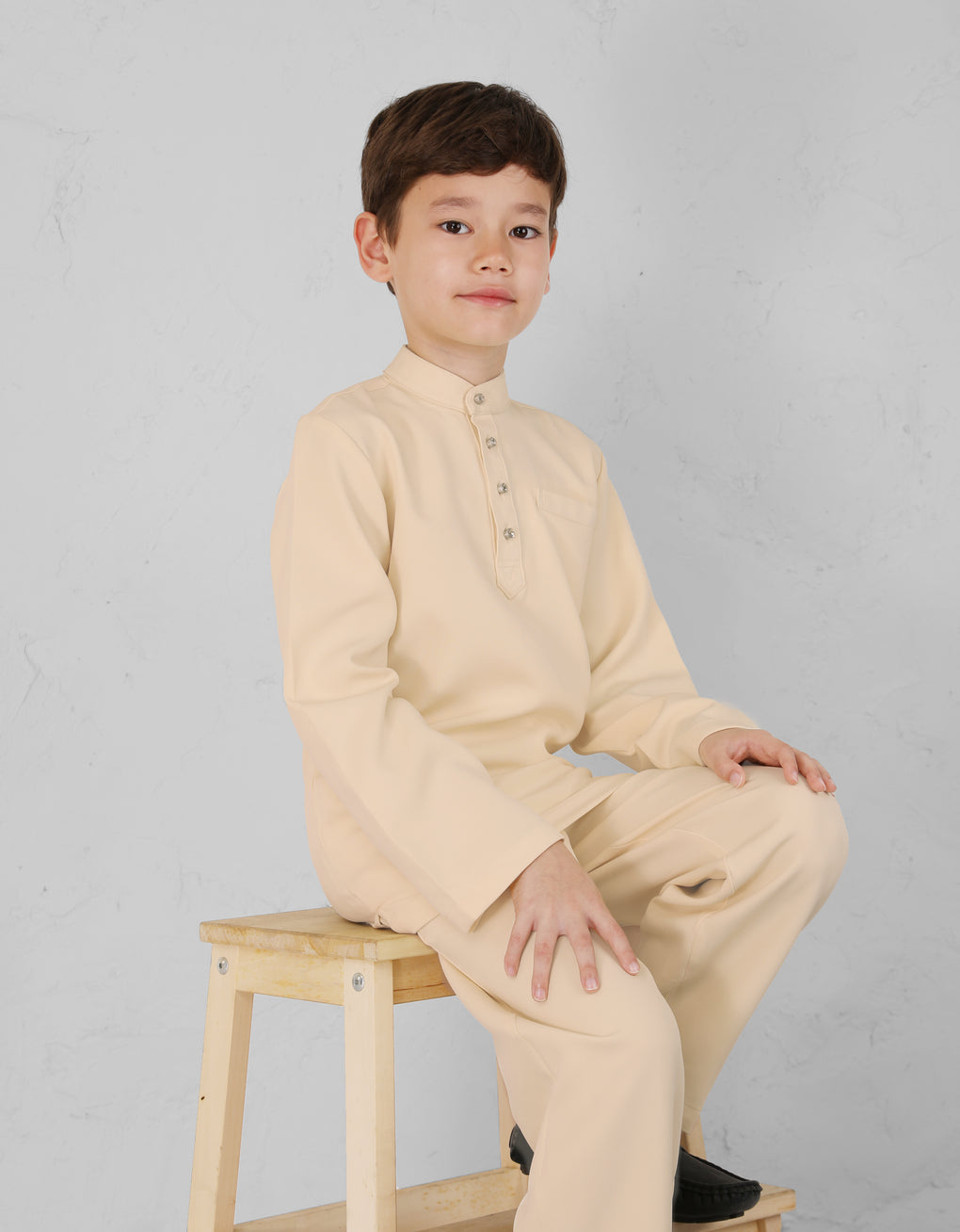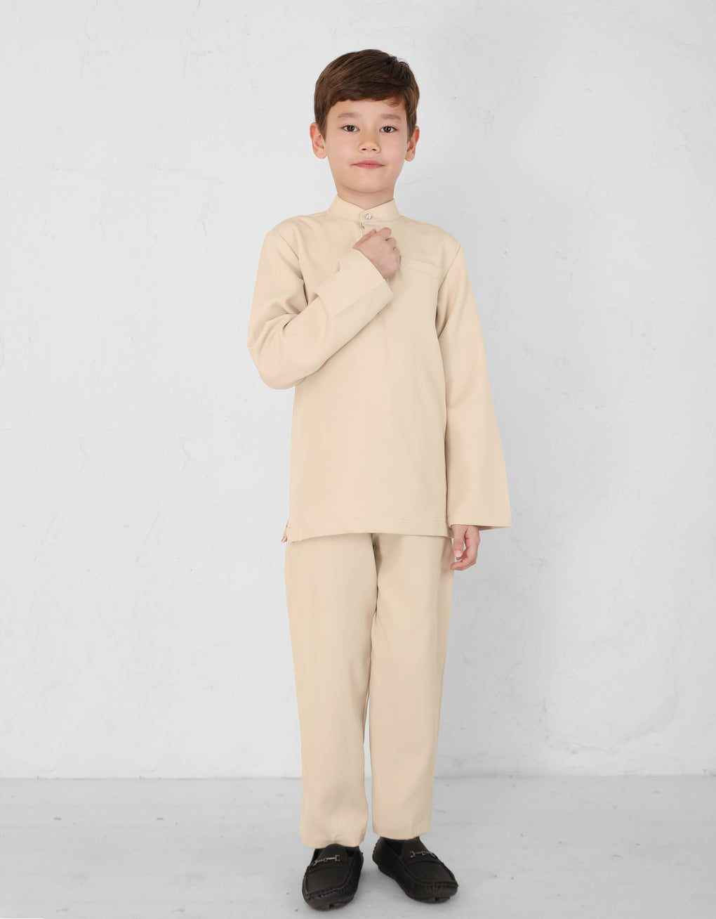 A Modern take on the classic Baju Melayu Cekak Musang - clean lines, tailored fit, and refined details for a sleek traditional look. Perfect for Raya, Wedding or formal events. This timeless piece blends heritage with cotemporary style.