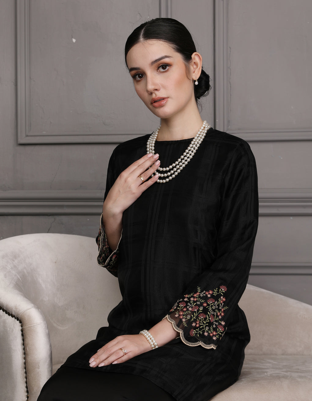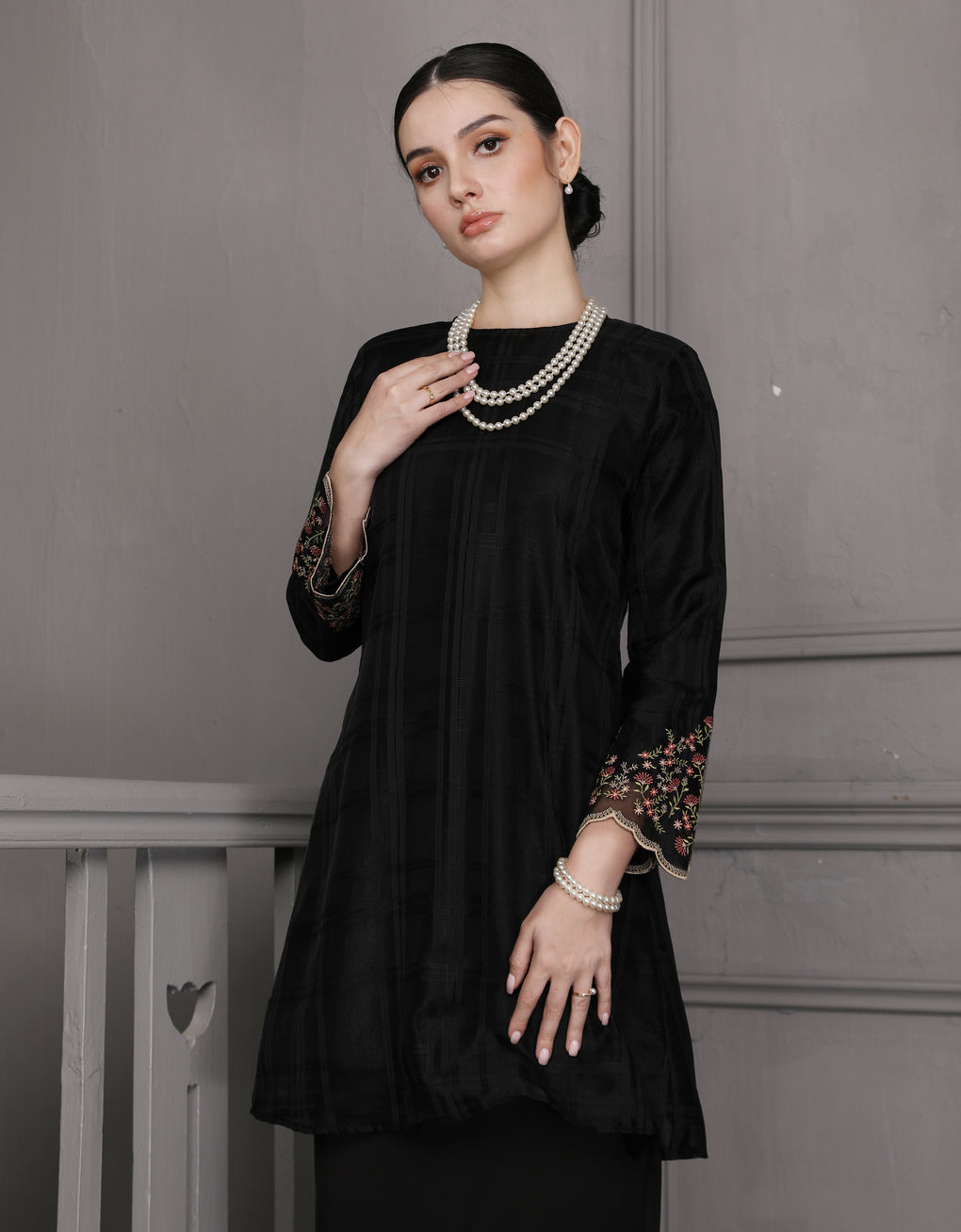 Baju Kurung Pahang Moden Nisrina exemplifies timeless Malaysian elegance reimagined for the modern wearer. This sophisticated piece features checked organdy lining with premium satin, delivering exceptional comfort and a refined drape. The exquisite embroidery detailing on the wrist cuffs serves as a distinctive focal point, showcasing meticulous craftsmanship that distinguishes this garment.