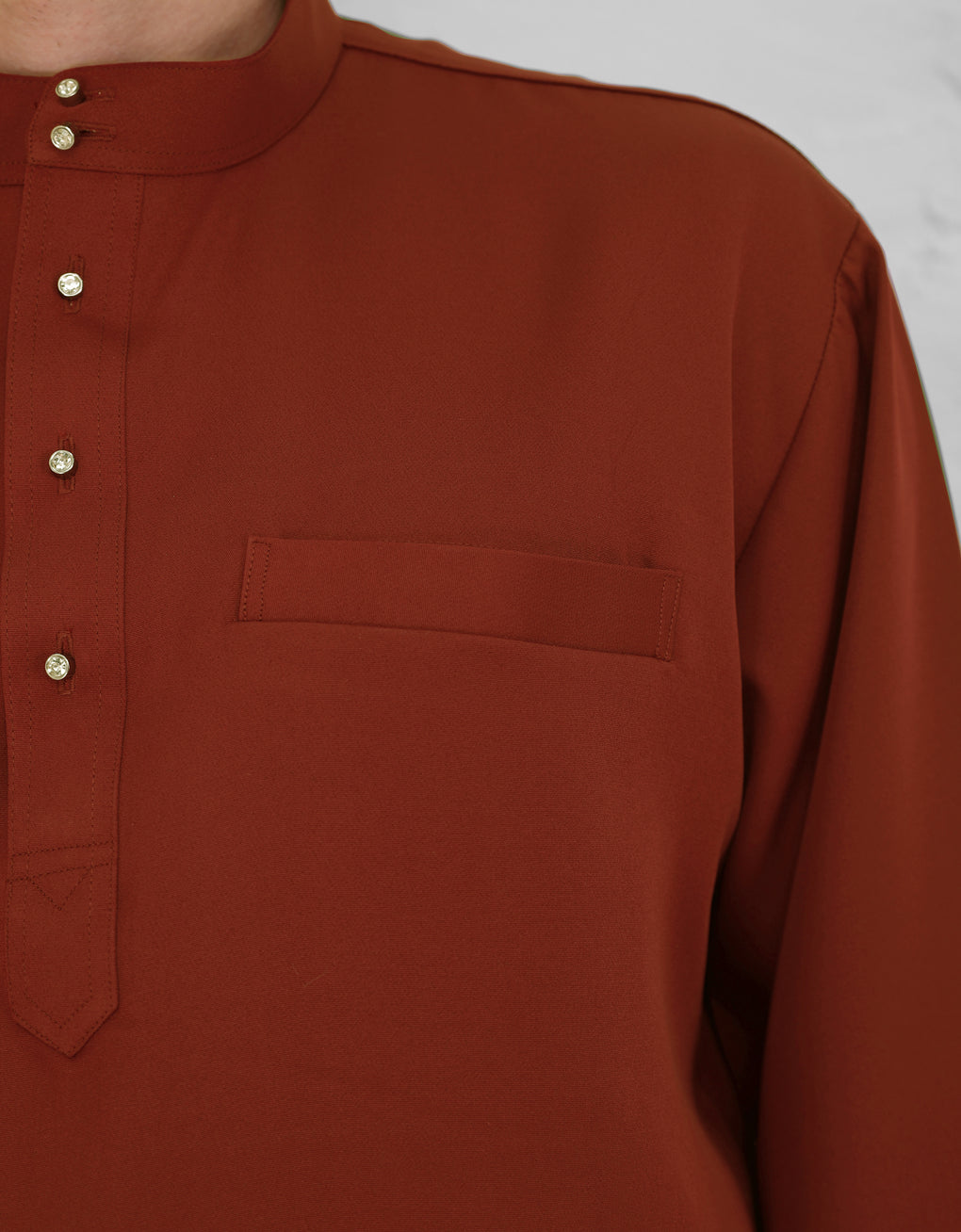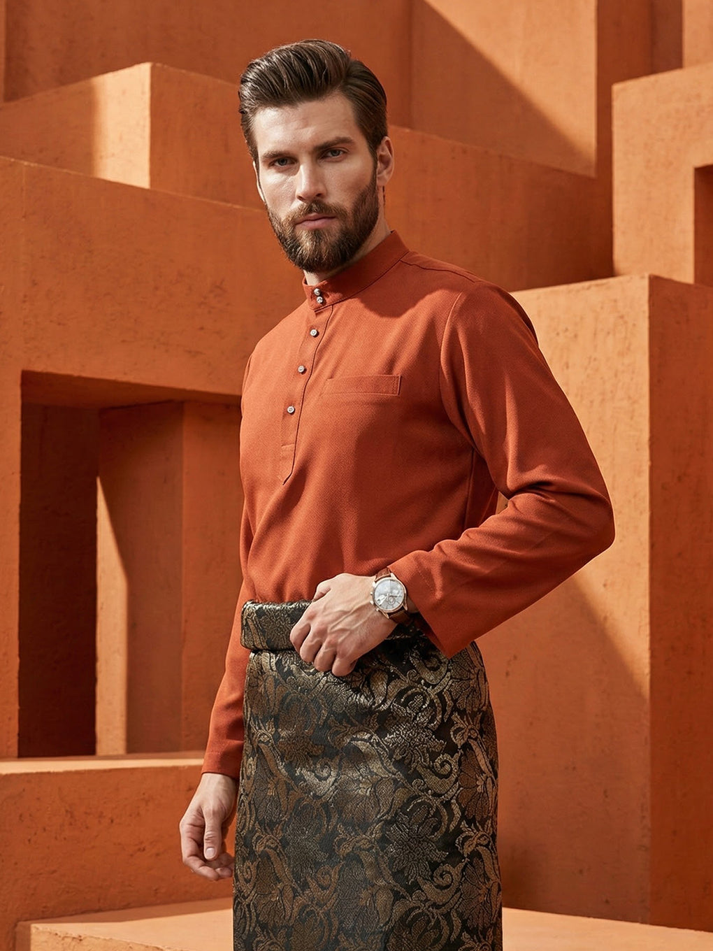 A Modern take on the classic Baju Melayu Cekak Musang  - clean lines, tailored fit, and refined details for a sleek traditional look. Perfect for Raya, Wedding or formal events. This timeless piece blends heritage with cotemporary style.