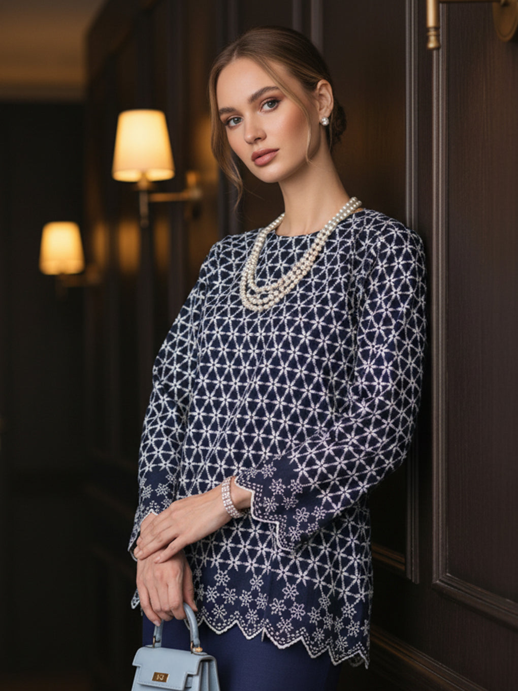 BAJU KURUNG KEDAH MADELYN (NAVY BLUE)