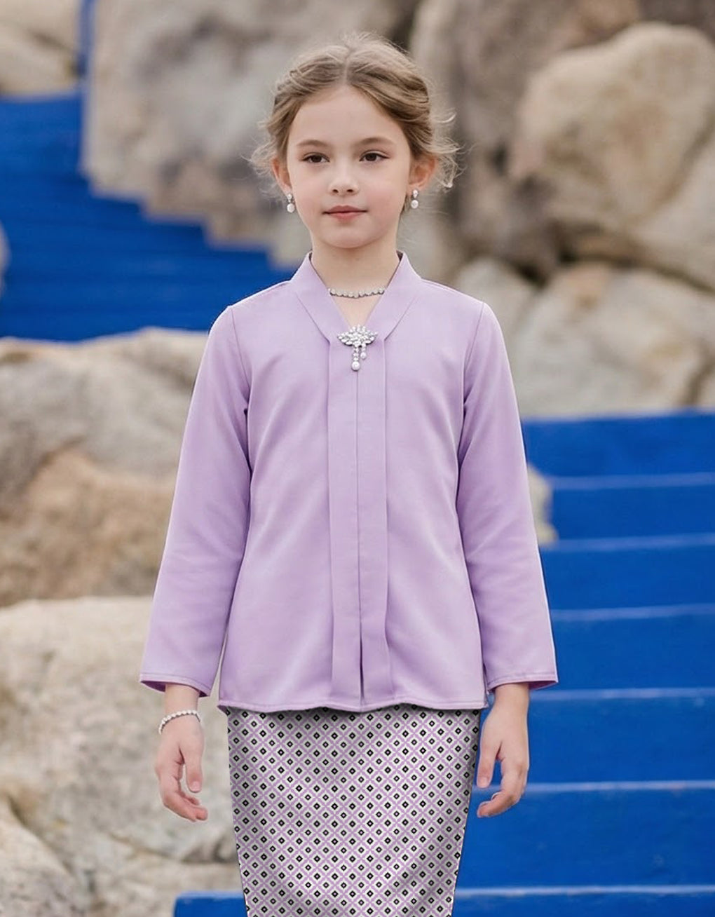 Introduce your daughter to timeless elegance with the Kids Baju Kebaya Melyra features a coordinated plain satin top paired with a beautifully printed satin skirt, designed for the modern family. The soft sage green hue complements all skin tones, while the premium satin fabric drapes gracefully for a polished appearance. Perfect for festive occasions, family portraits, or special celebrations, this mother-daughter ensemble creates a cohesive, sophisticated look. The quality construction ensures comfort throughout the day, making it an investment piece for memorable moments together.Size Guide: The model wears a size 8 and is 120 cm tall