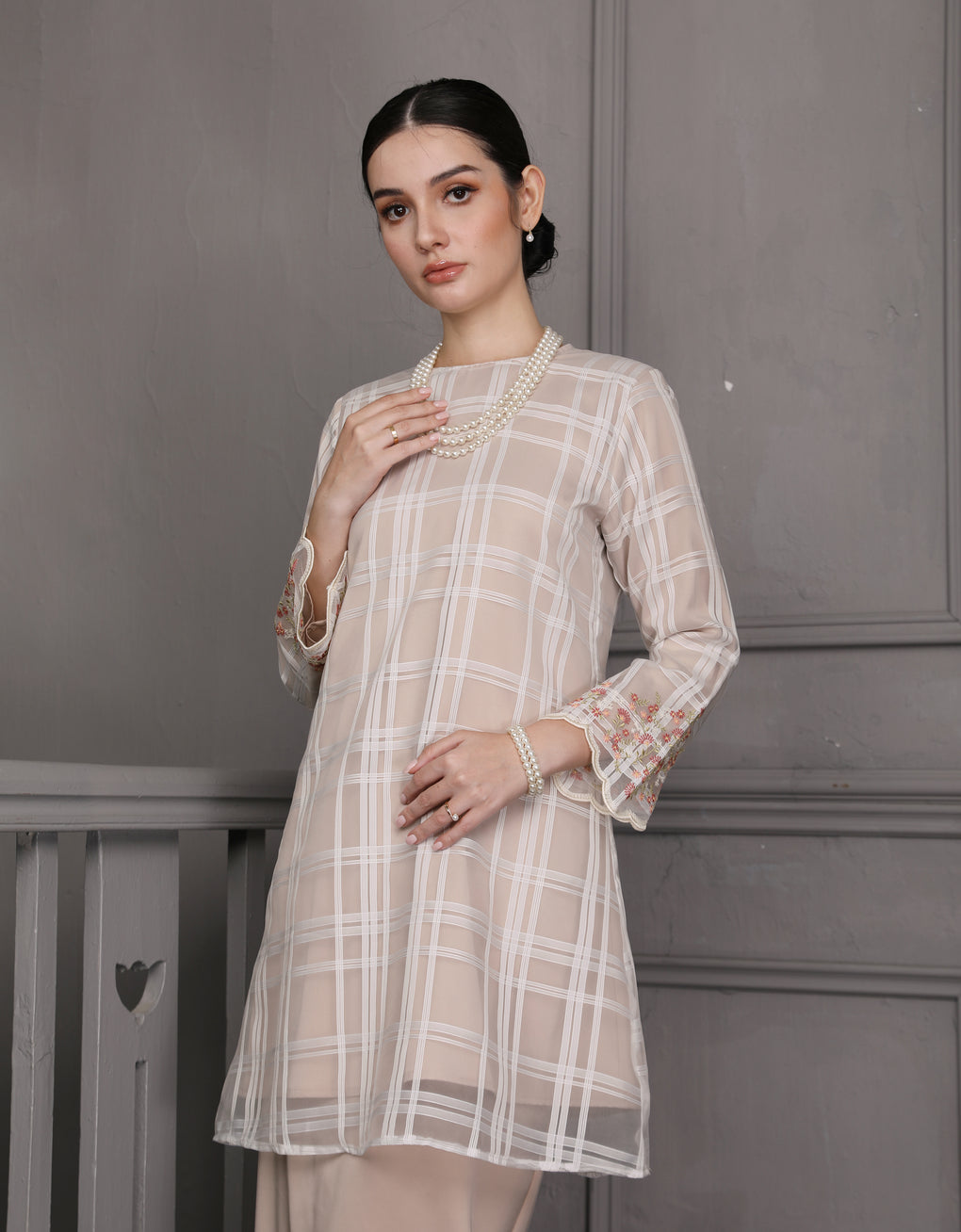 Baju Kurung Pahang Moden Nisrina exemplifies timeless Malaysian elegance reimagined for the modern wearer. This sophisticated piece features checked organdy lining with premium satin, delivering exceptional comfort and a refined drape. The exquisite embroidery detailing on the wrist cuffs serves as a distinctive focal point, showcasing meticulous craftsmanship that distinguishes this garment.