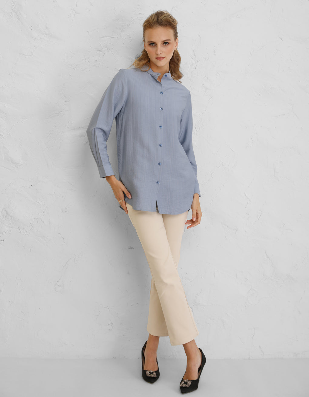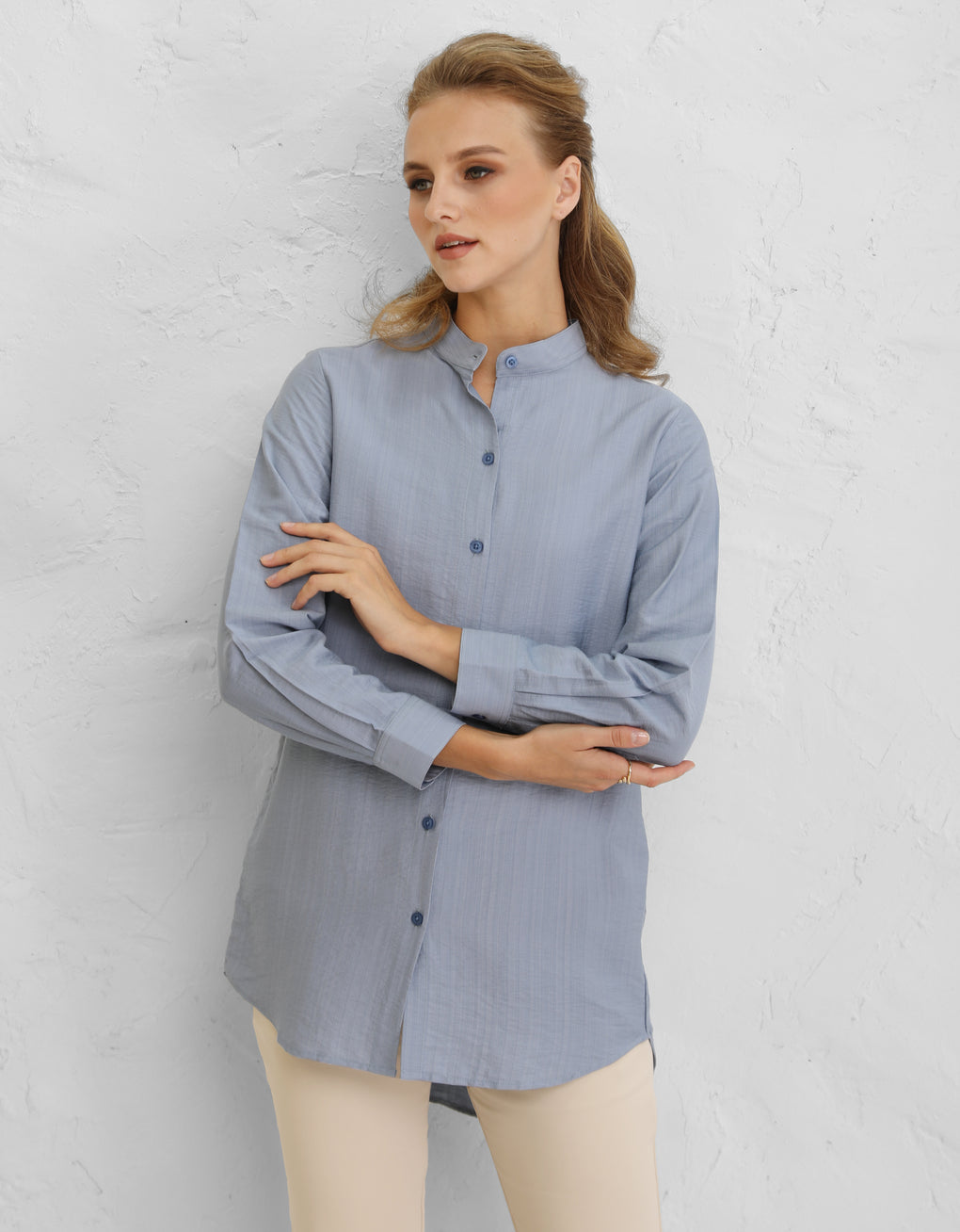 ✿ Buttoned down shirt with mandarin collar