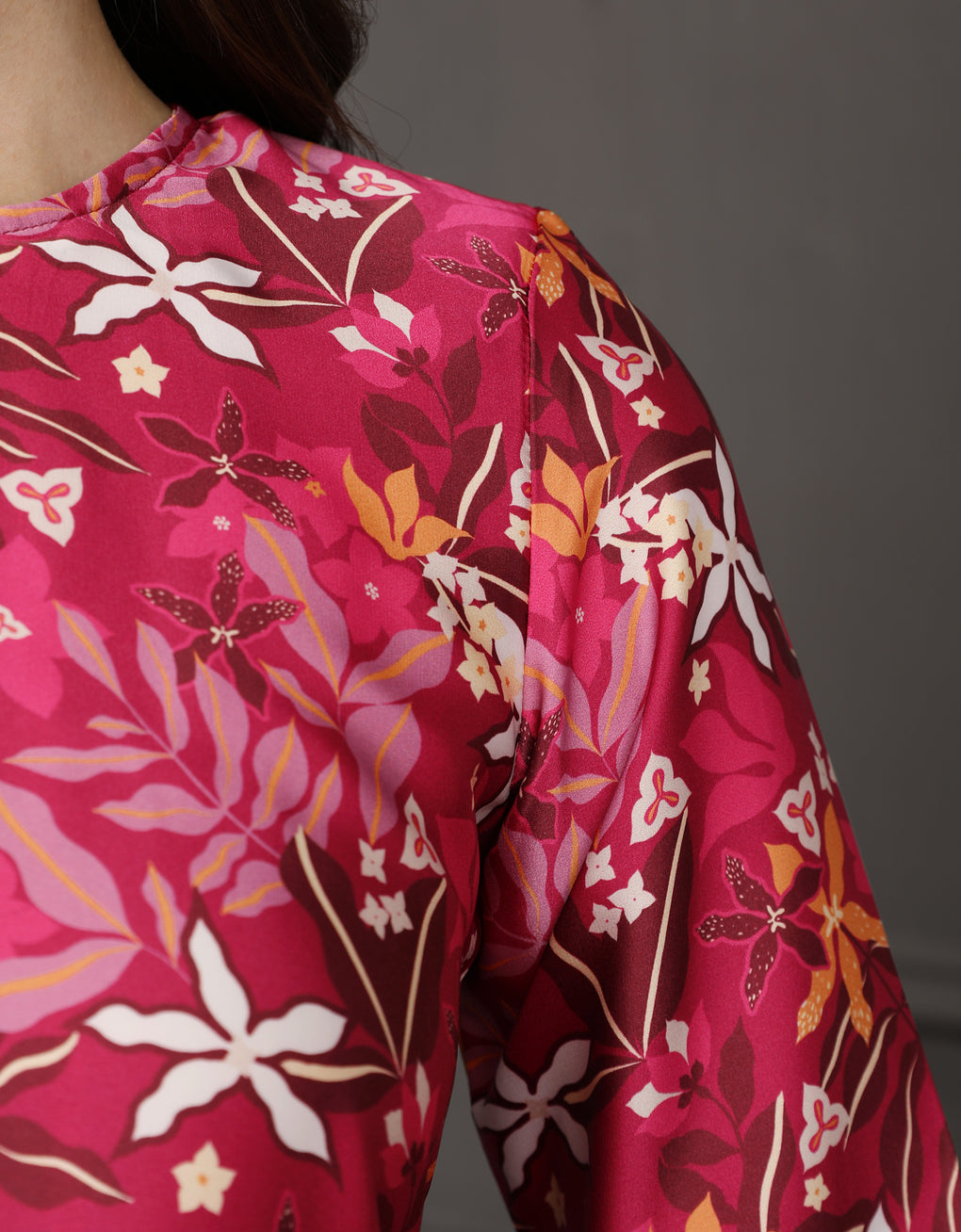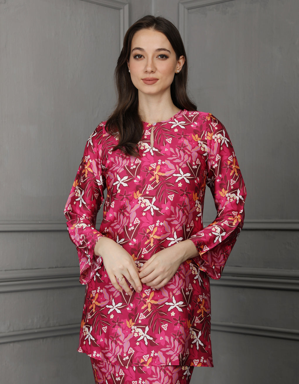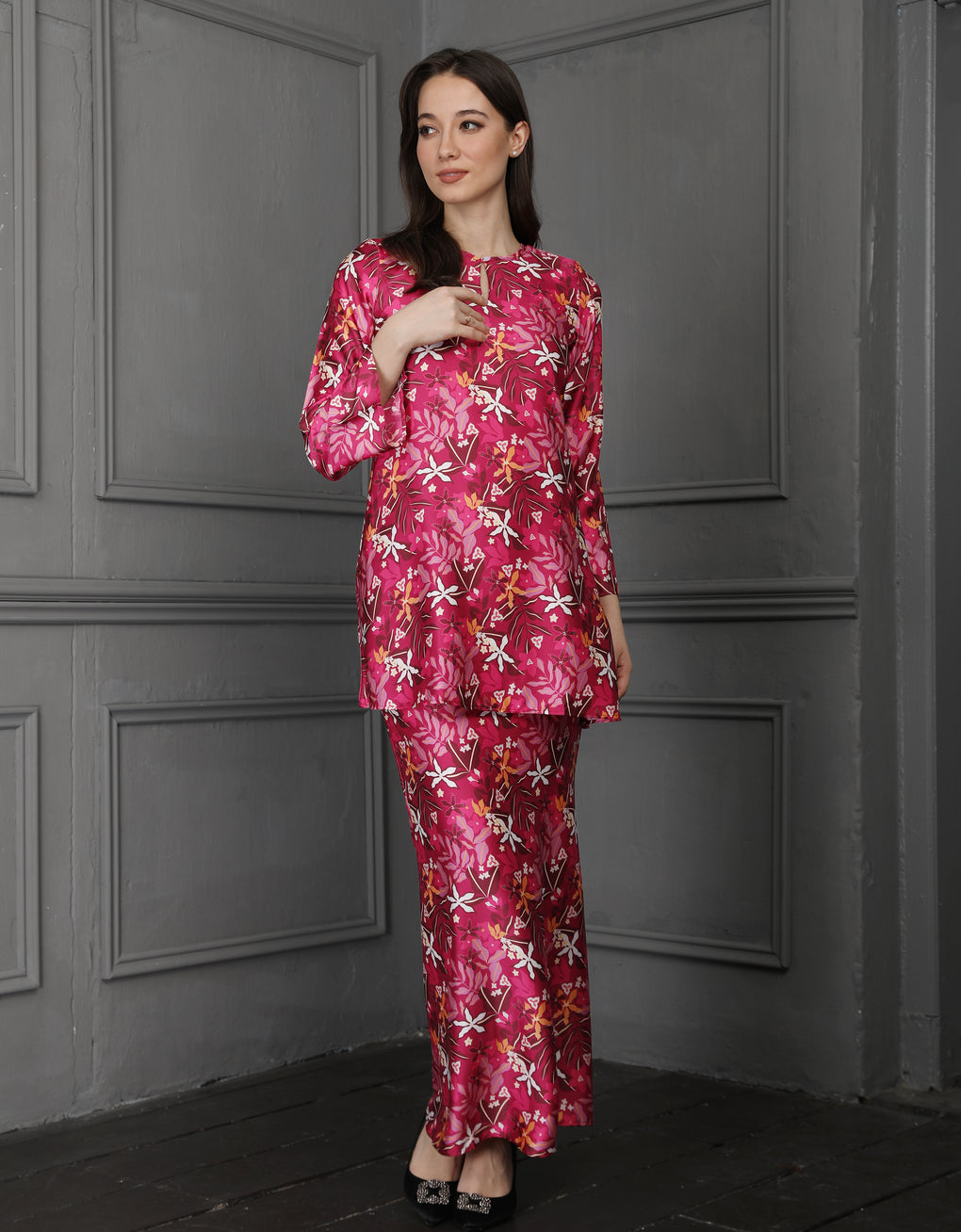 Material: Diore Silky Satin - The satin silk fabric boasts a glossy and elegant drape, featuring exclusive prints that add a touch of luster to the garment.