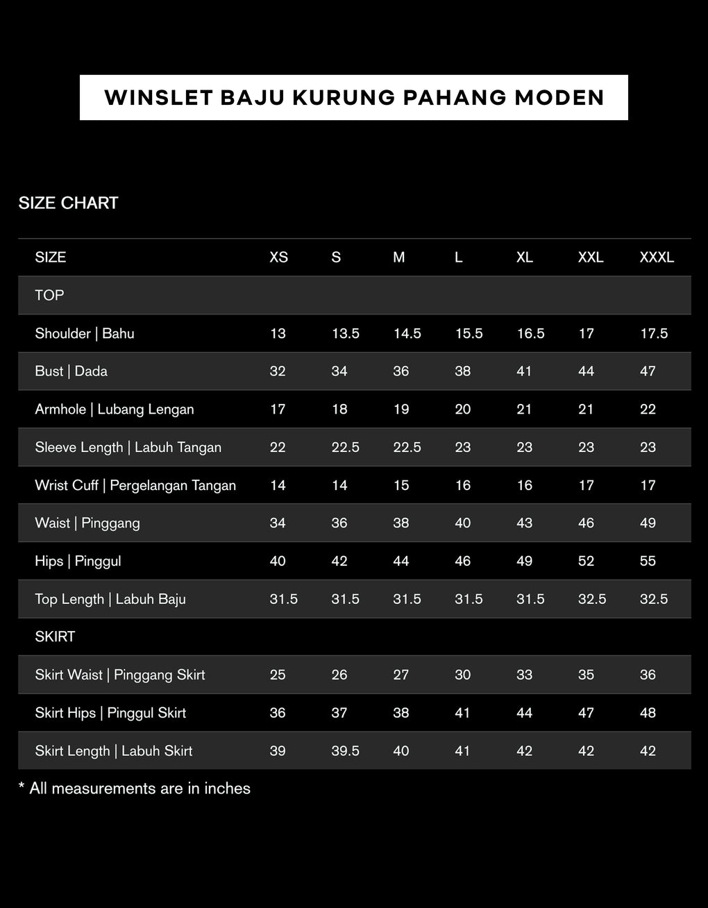 Skirt Length | Labuh Skirt 39 39.5 40 41 42 42 42