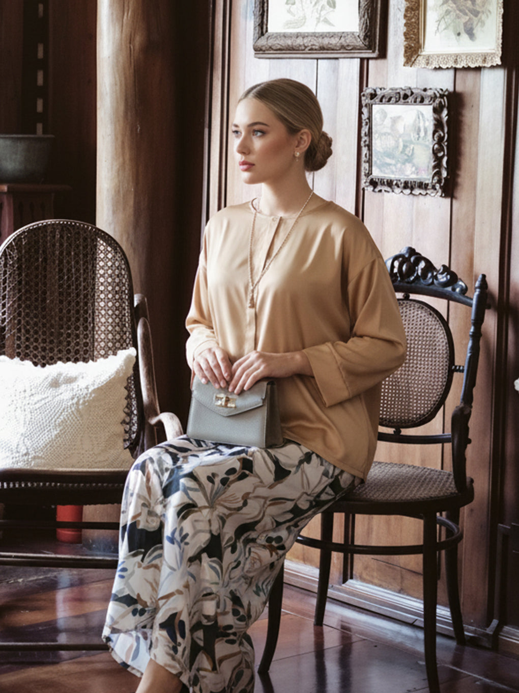 Top: Armani Silky Satin - Soft and silky feels against the skin. It offers a comfortable fit and a timeless style that is perfect for any occasion.