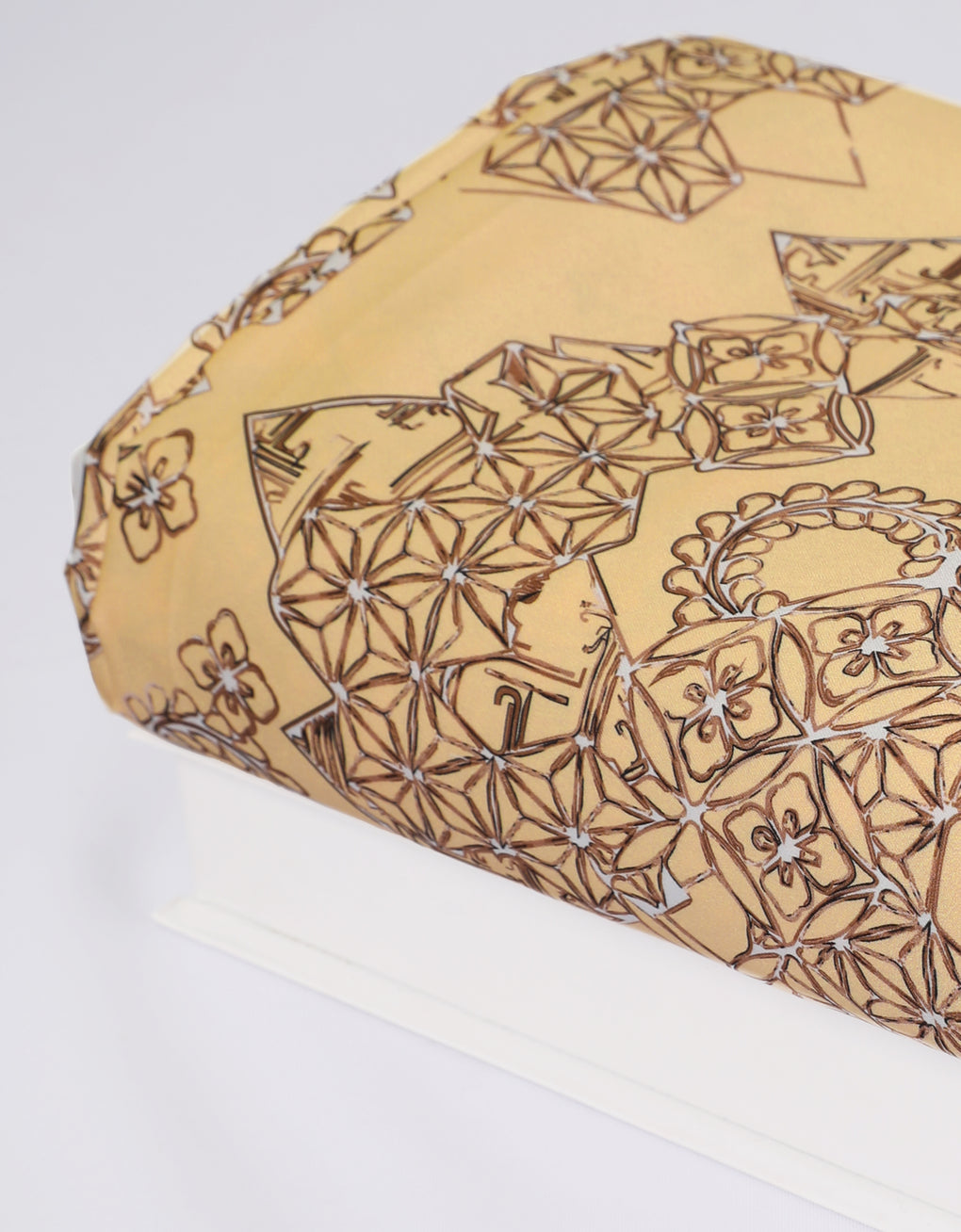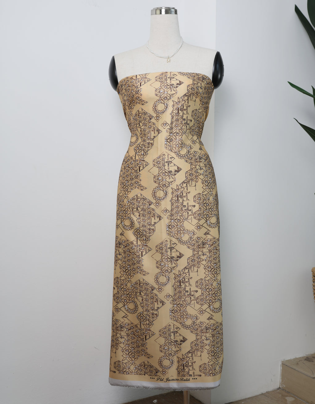 Jasmine Satin is a fabric that come in exclusive floral patterns and abstract. It is very comfy, breathable, and not transparent. This satin has a good of durability and drapability. It has a flowy drape that works well especially for garment sewing.