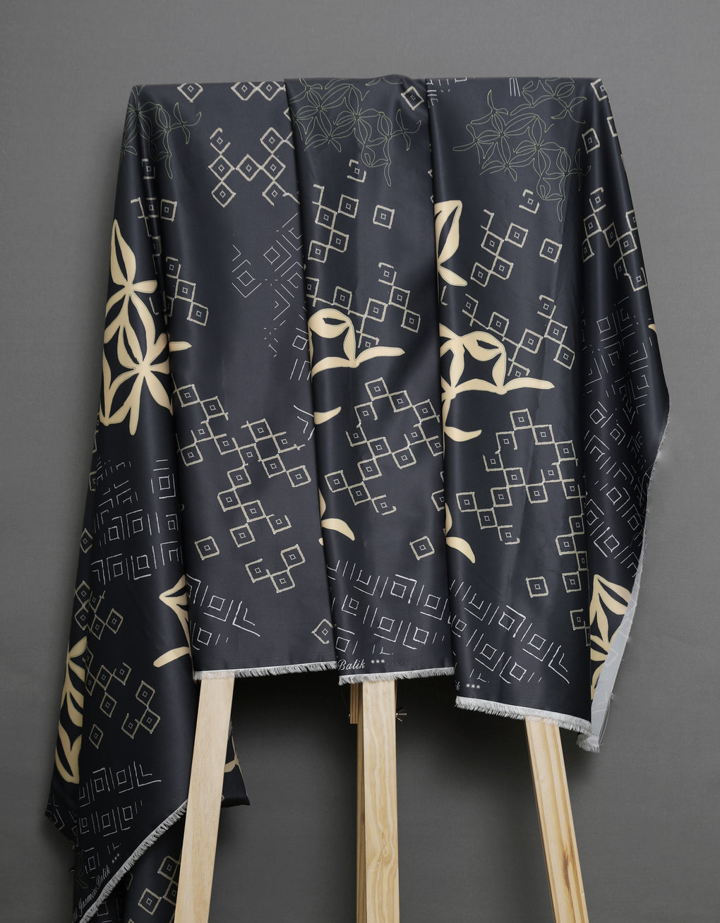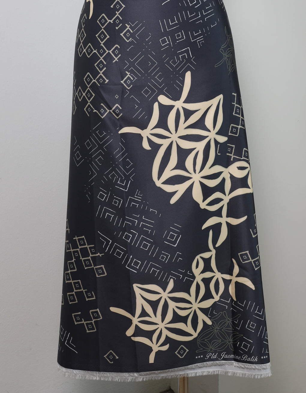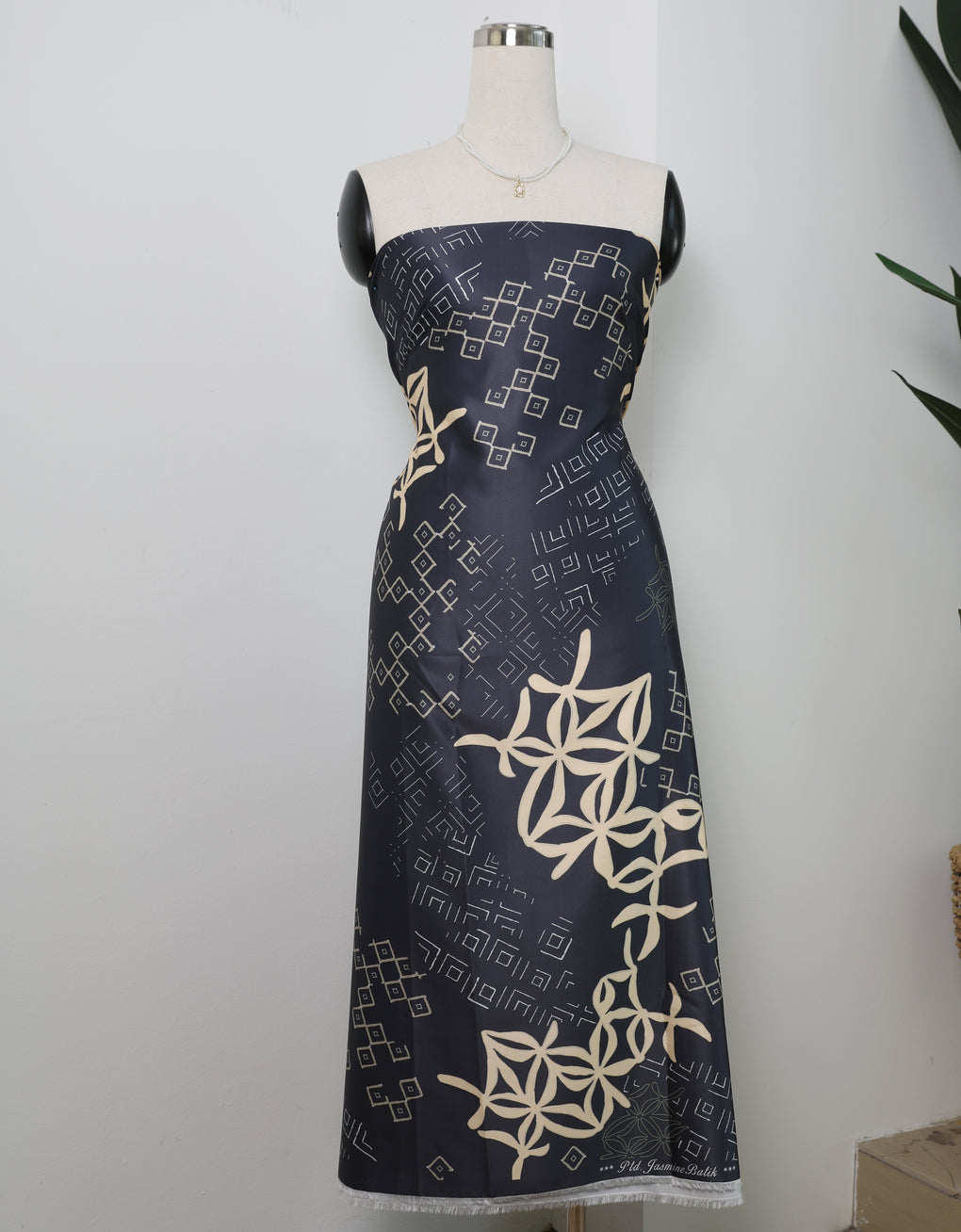 Jasmine Satin is a fabric that come in exclusive floral patterns and abstract. It is very comfy, breathable, and not transparent. This satin has a good of durability and drapability. It has a flowy drape that works well especially for garment sewing.
