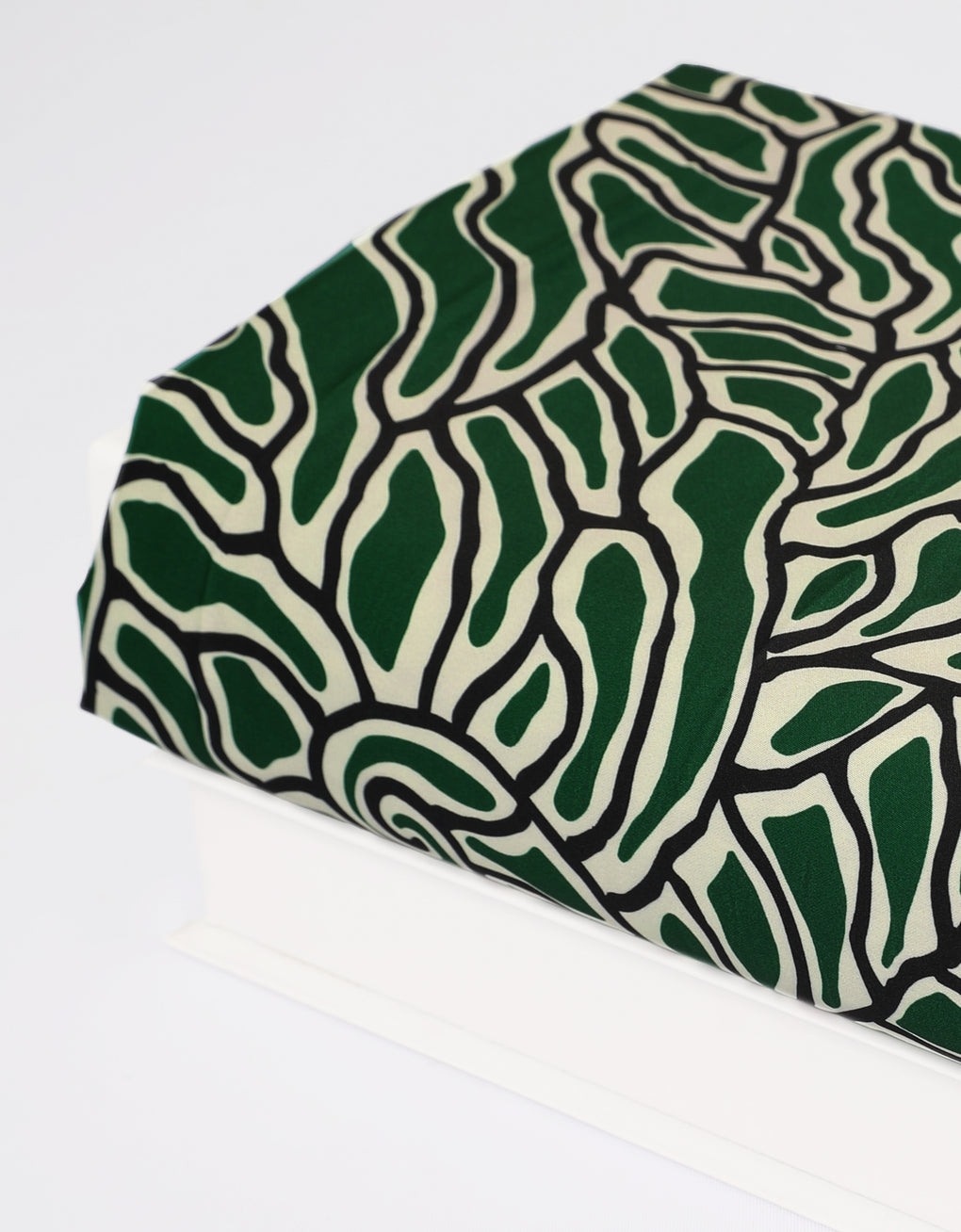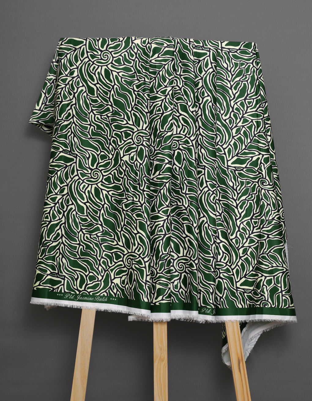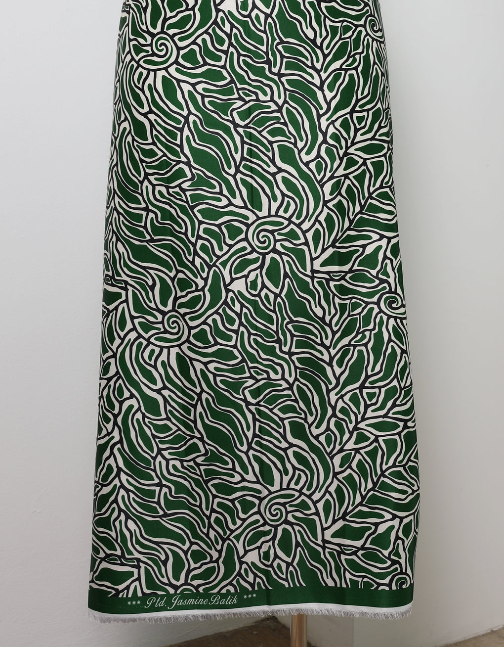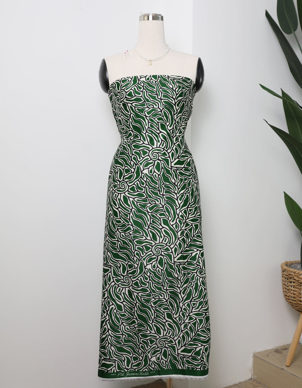 Jasmine Satin is a fabric that come in exclusive floral patterns and abstract. It is very comfy, breathable, and not transparent. This satin has a good of durability and drapability. It has a flowy drape that works well especially for garment sewing.