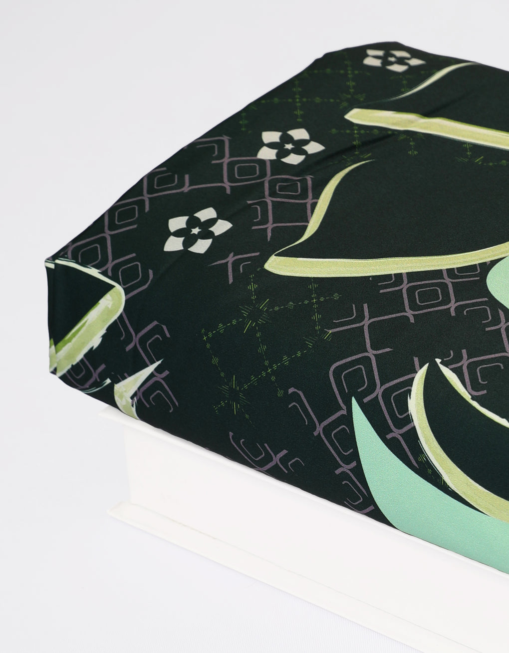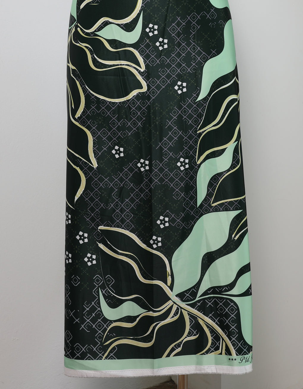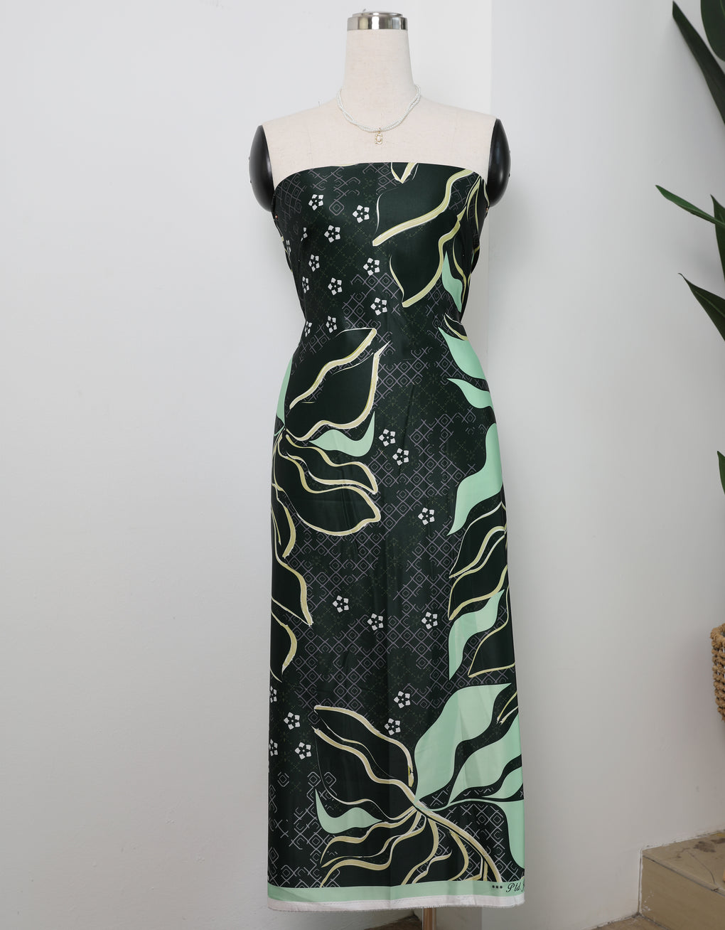 Jasmine Satin is a fabric that come in exclusive floral patterns and abstract. It is very comfy, breathable, and not transparent. This satin has a good of durability and drapability. It has a flowy drape that works well especially for garment sewing.