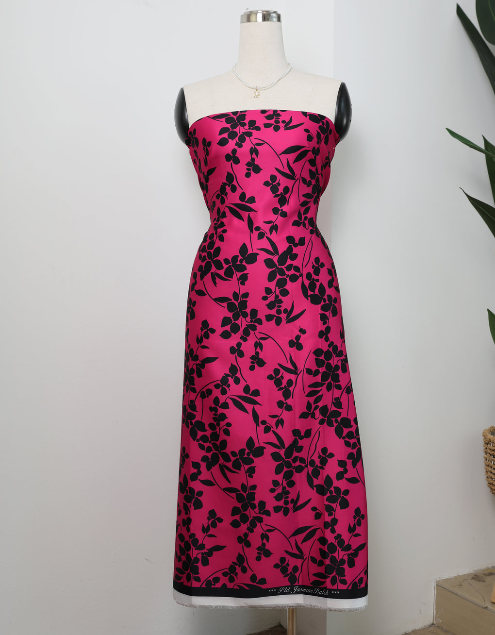 Jasmine Satin is a fabric that come in exclusive floral patterns and abstract. It is very comfy, breathable, and not transparent. This satin has a good of durability and drapability. It has a flowy drape that works well especially for garment sewing.