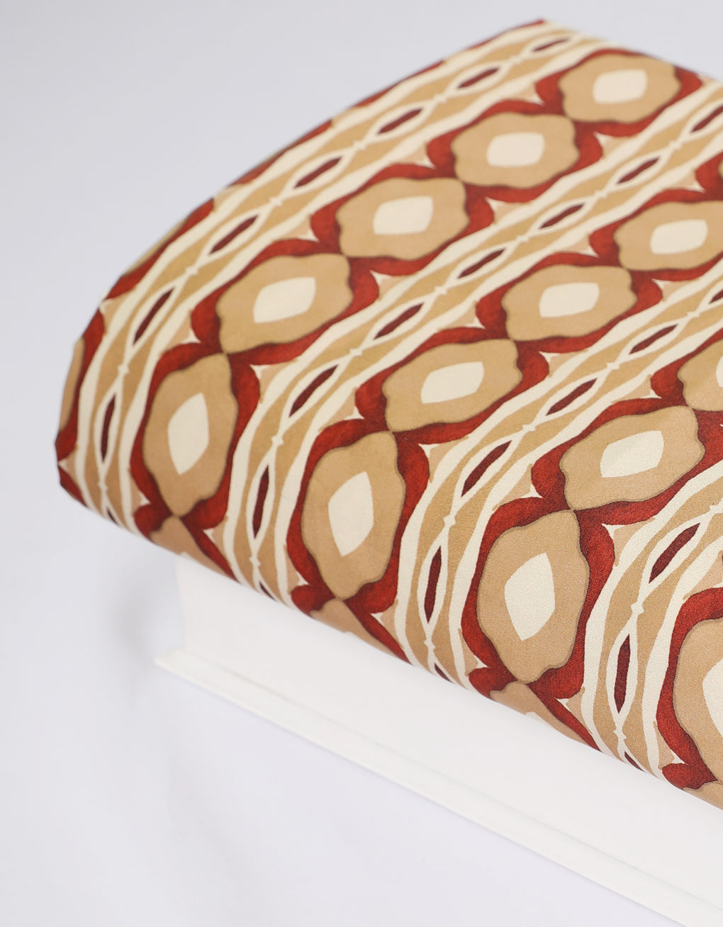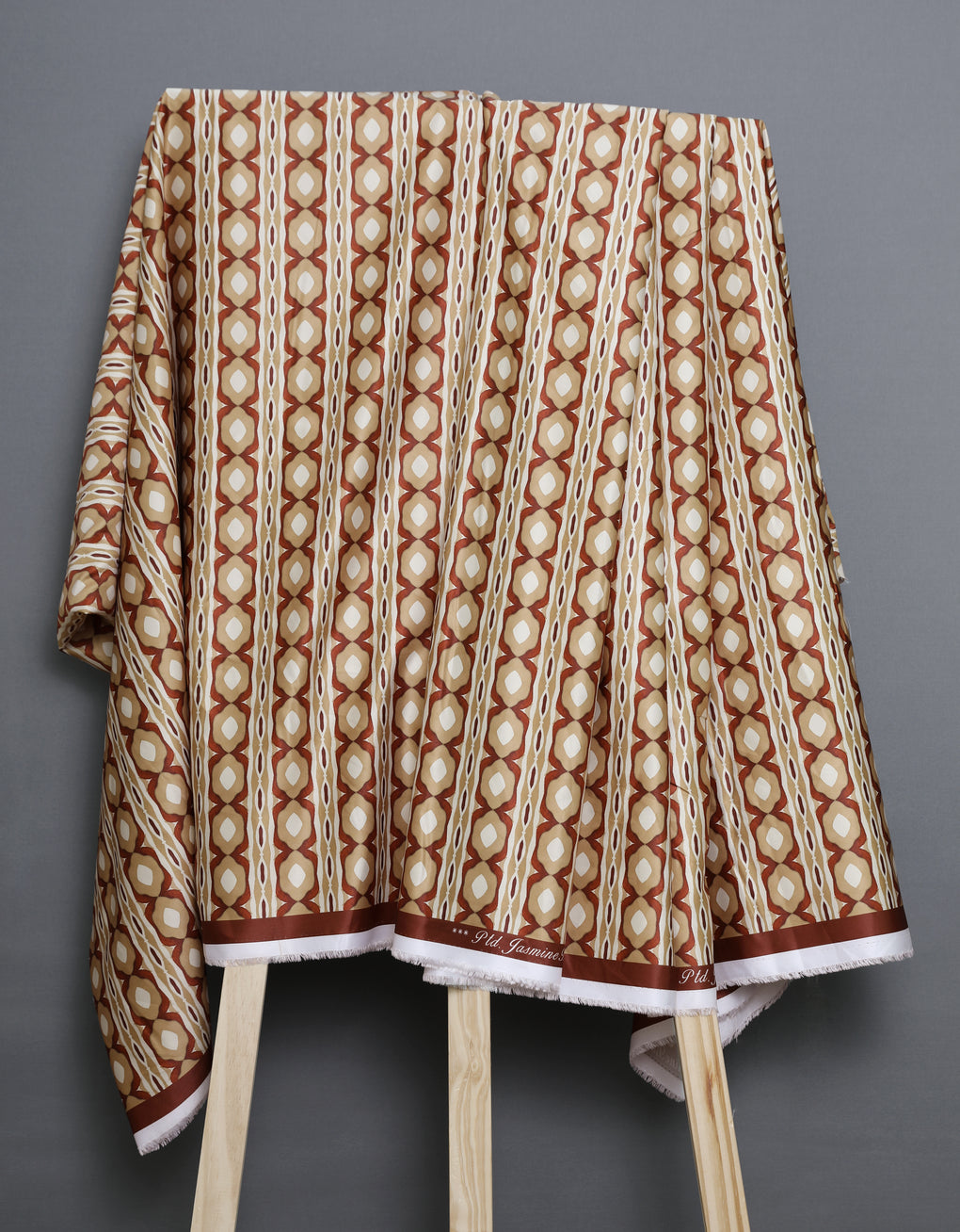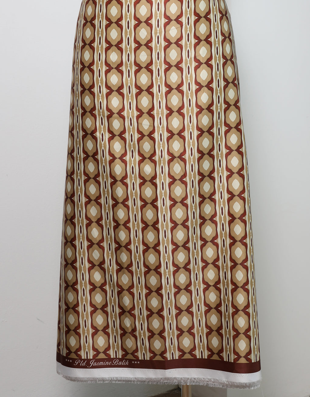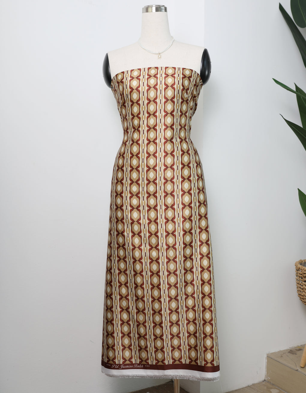 Jasmine Satin is a fabric that come in exclusive floral patterns and abstract. It is very comfy, breathable, and not transparent. This satin has a good of durability and drapability. It has a flowy drape that works well especially for garment sewing.