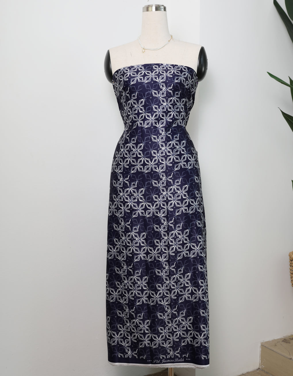 Jasmine Satin is a fabric that come in exclusive floral patterns and abstract. It is very comfy, breathable, and not transparent. This satin has a good of durability and drapability. It has a flowy drape that works well especially for garment sewing.