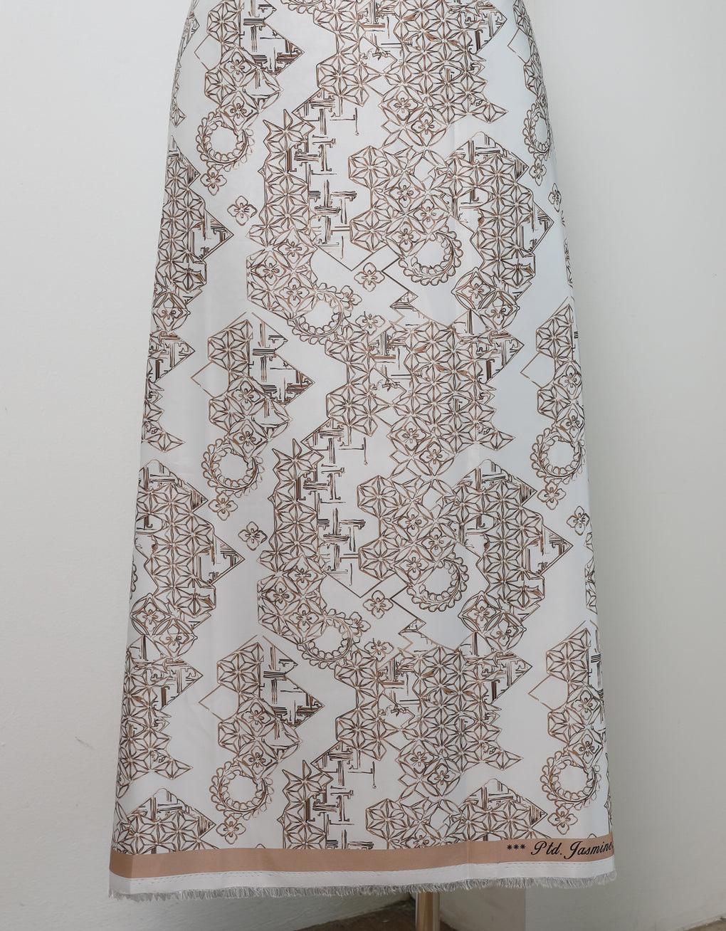 Jasmine Satin is a fabric that come in exclusive floral patterns and abstract. It is very comfy, breathable, and not transparent. This satin has a good of durability and drapability. It has a flowy drape that works well especially for garment sewing.
