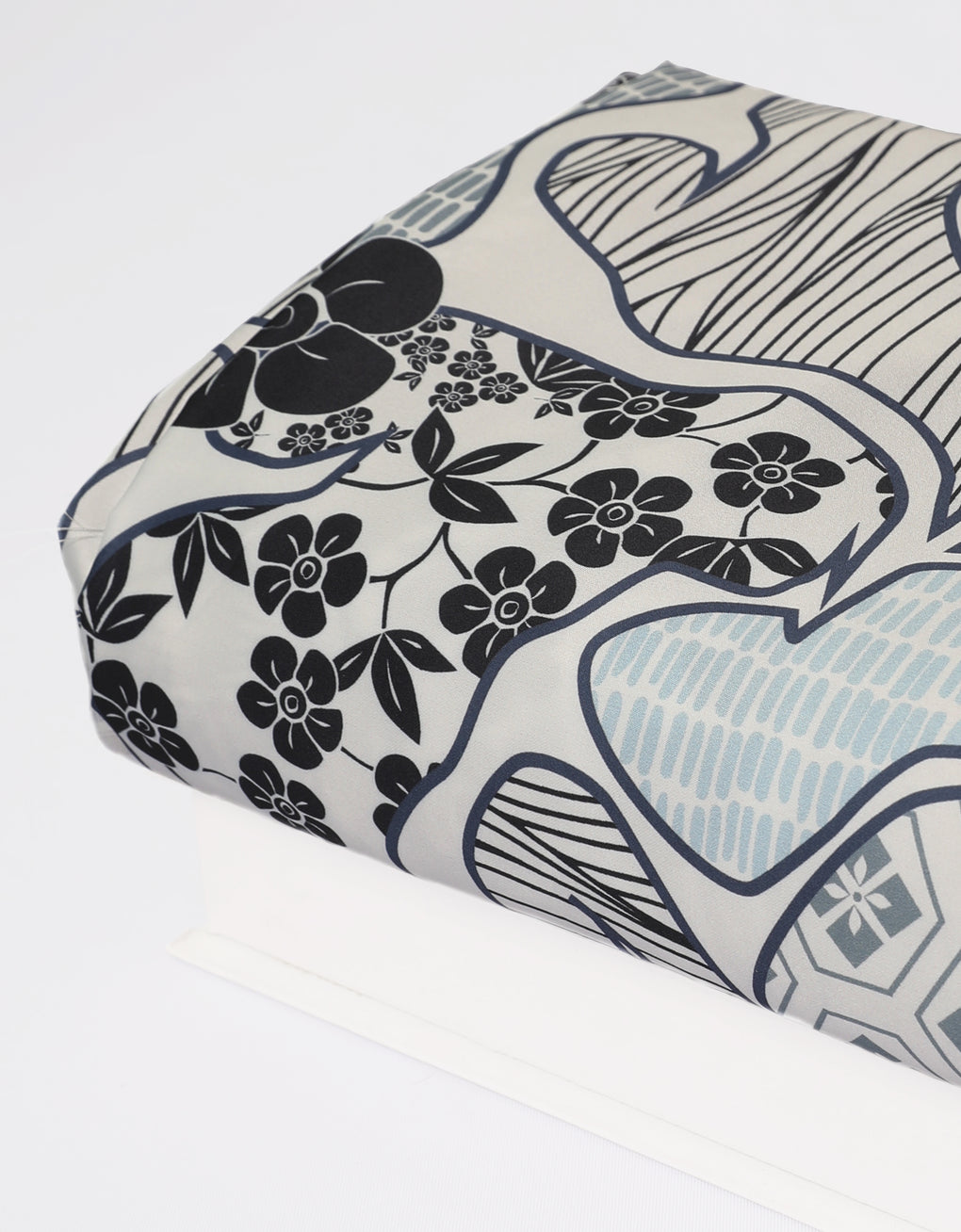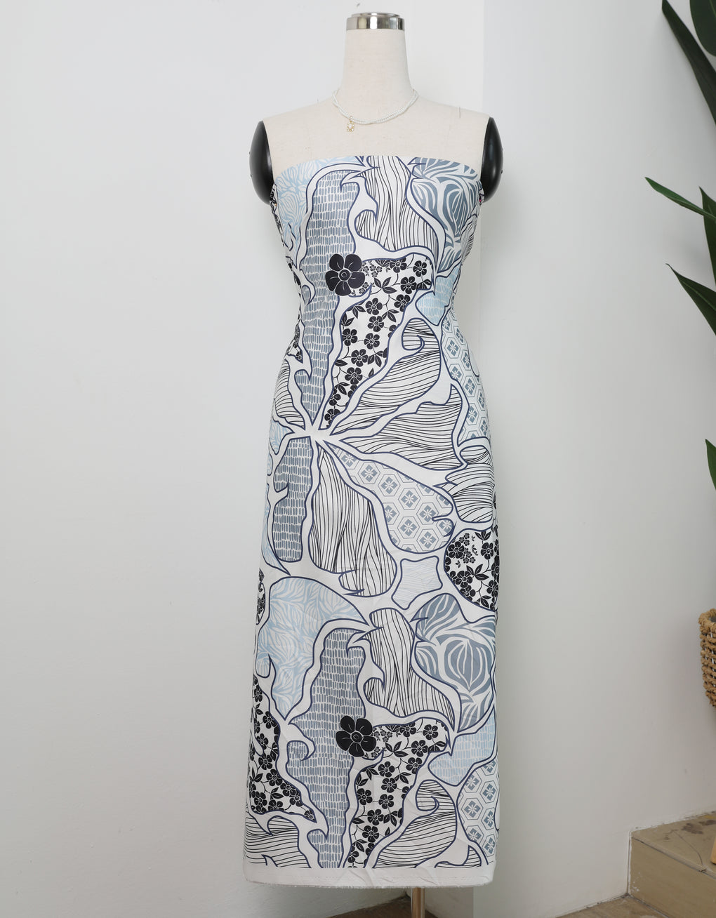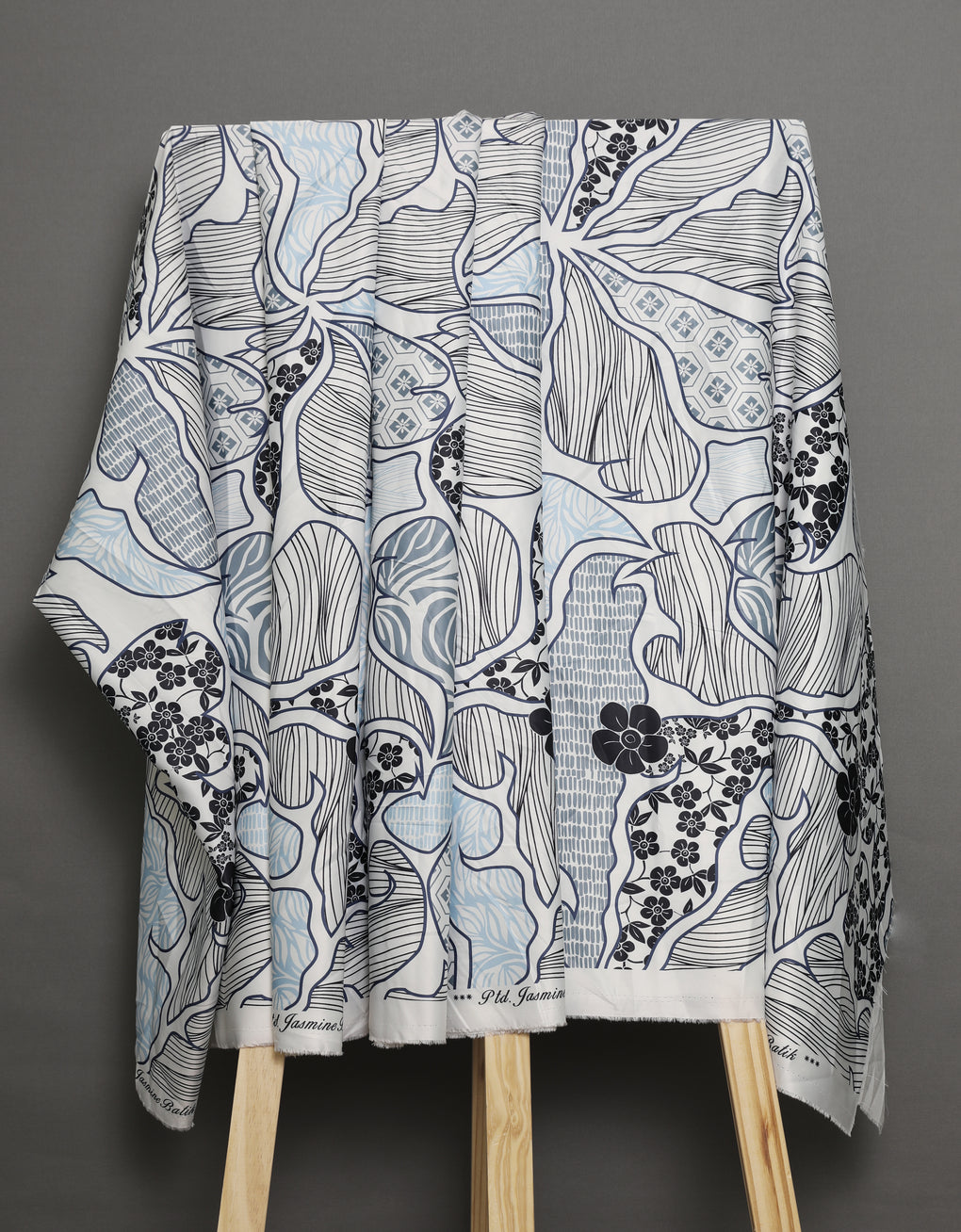 Jasmine Satin is a fabric that come in exclusive floral patterns and abstract. It is very comfy, breathable, and not transparent. This satin has a good of durability and drapability. It has a flowy drape that works well especially for garment sewing.