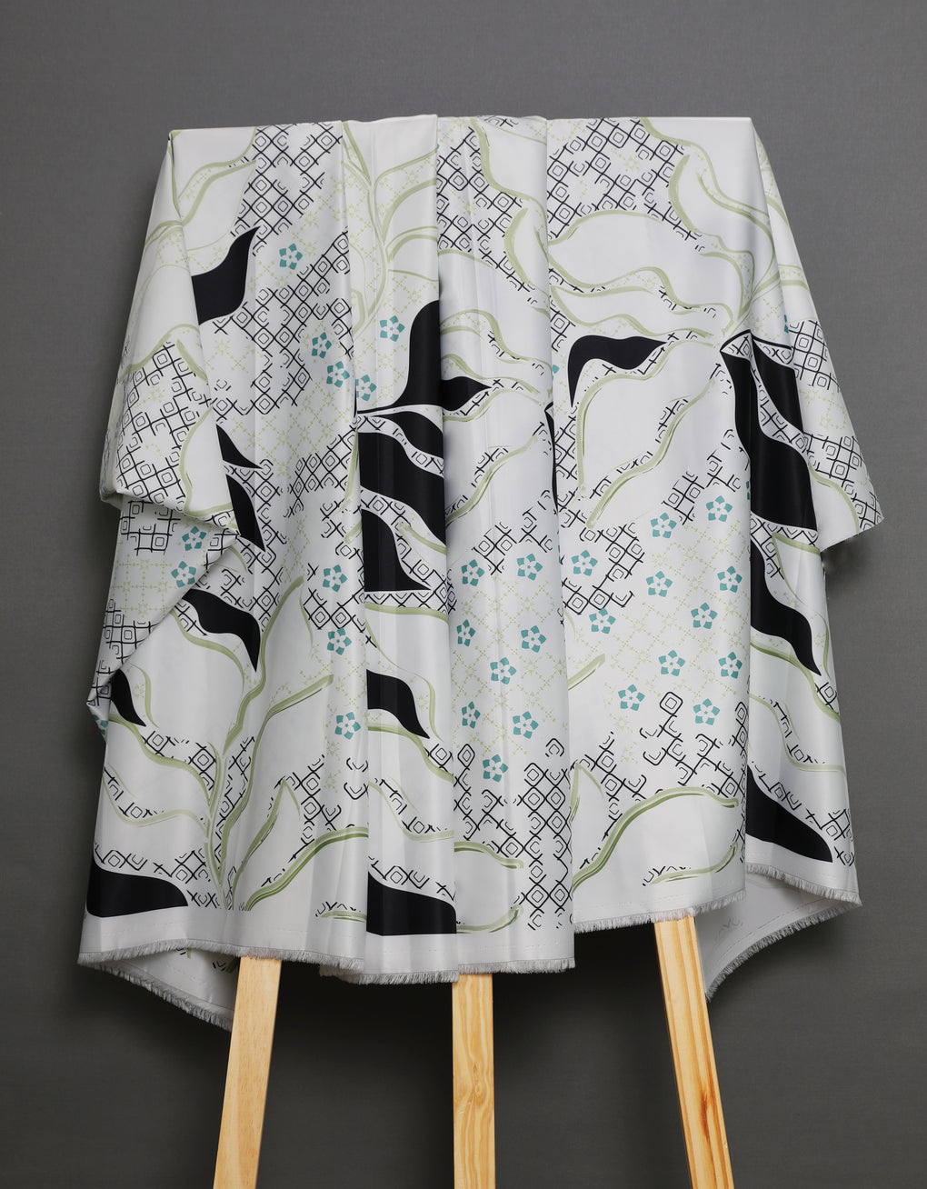 Jasmine Satin is a fabric that come in exclusive floral patterns and abstract. It is very comfy, breathable, and not transparent. This satin has a good of durability and drapability. It has a flowy drape that works well especially for garment sewing.