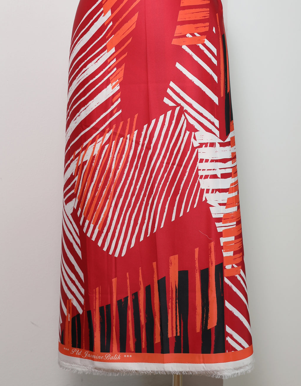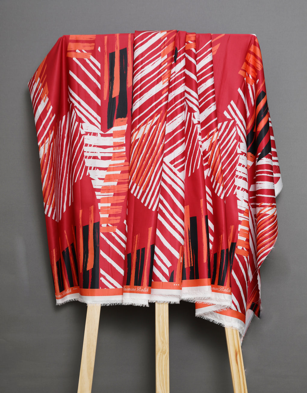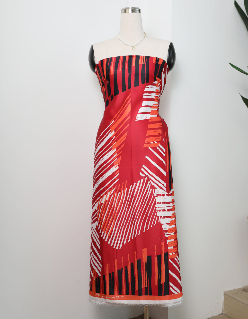 Jasmine Satin is a fabric that come in exclusive floral patterns and abstract. It is very comfy, breathable, and not transparent. This satin has a good of durability and drapability. It has a flowy drape that works well especially for garment sewing.