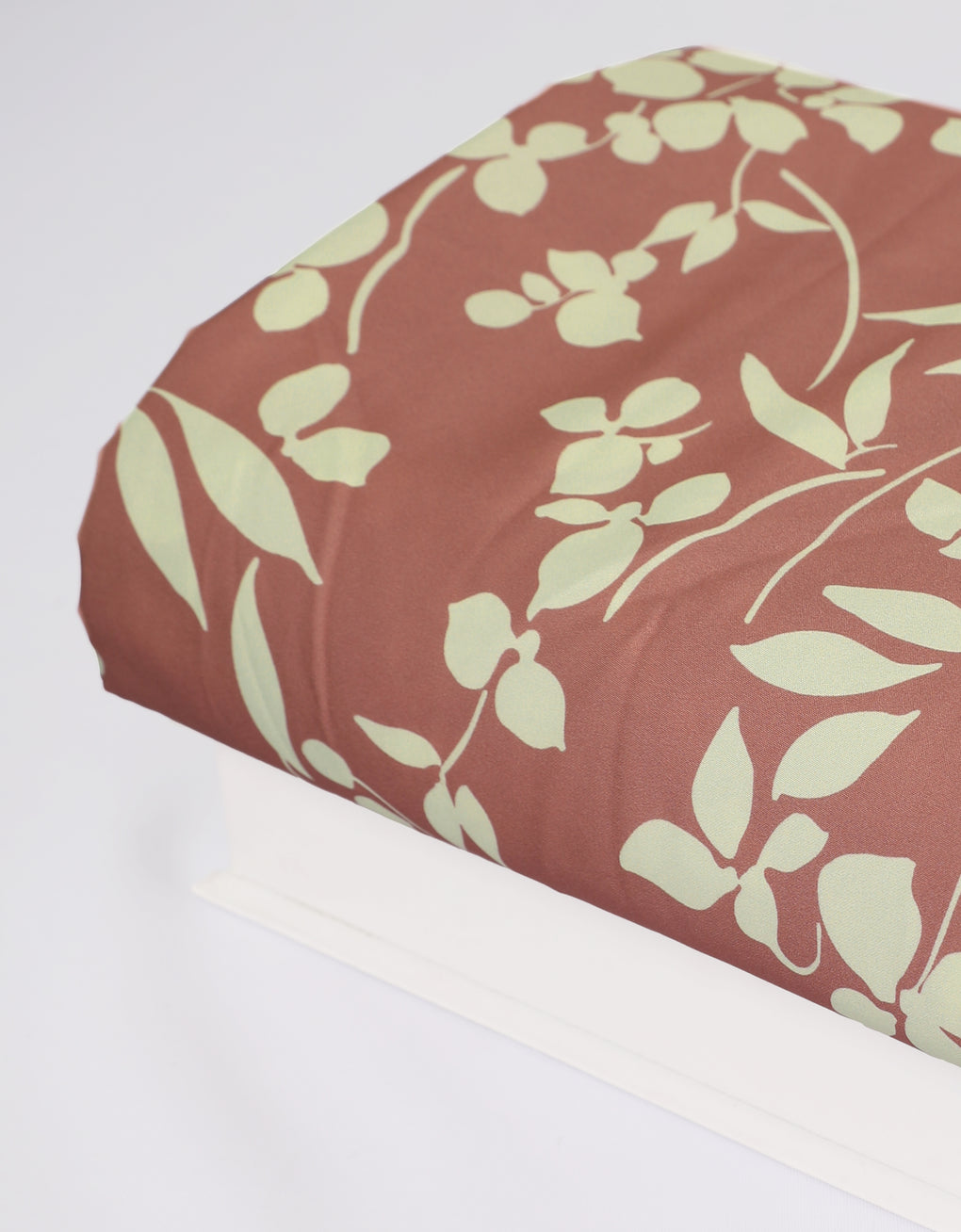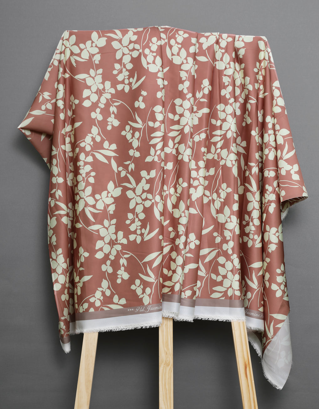 Jasmine Satin is a fabric that come in exclusive floral patterns and abstract. It is very comfy, breathable, and not transparent. This satin has a good of durability and drapability. It has a flowy drape that works well especially for garment sewing.