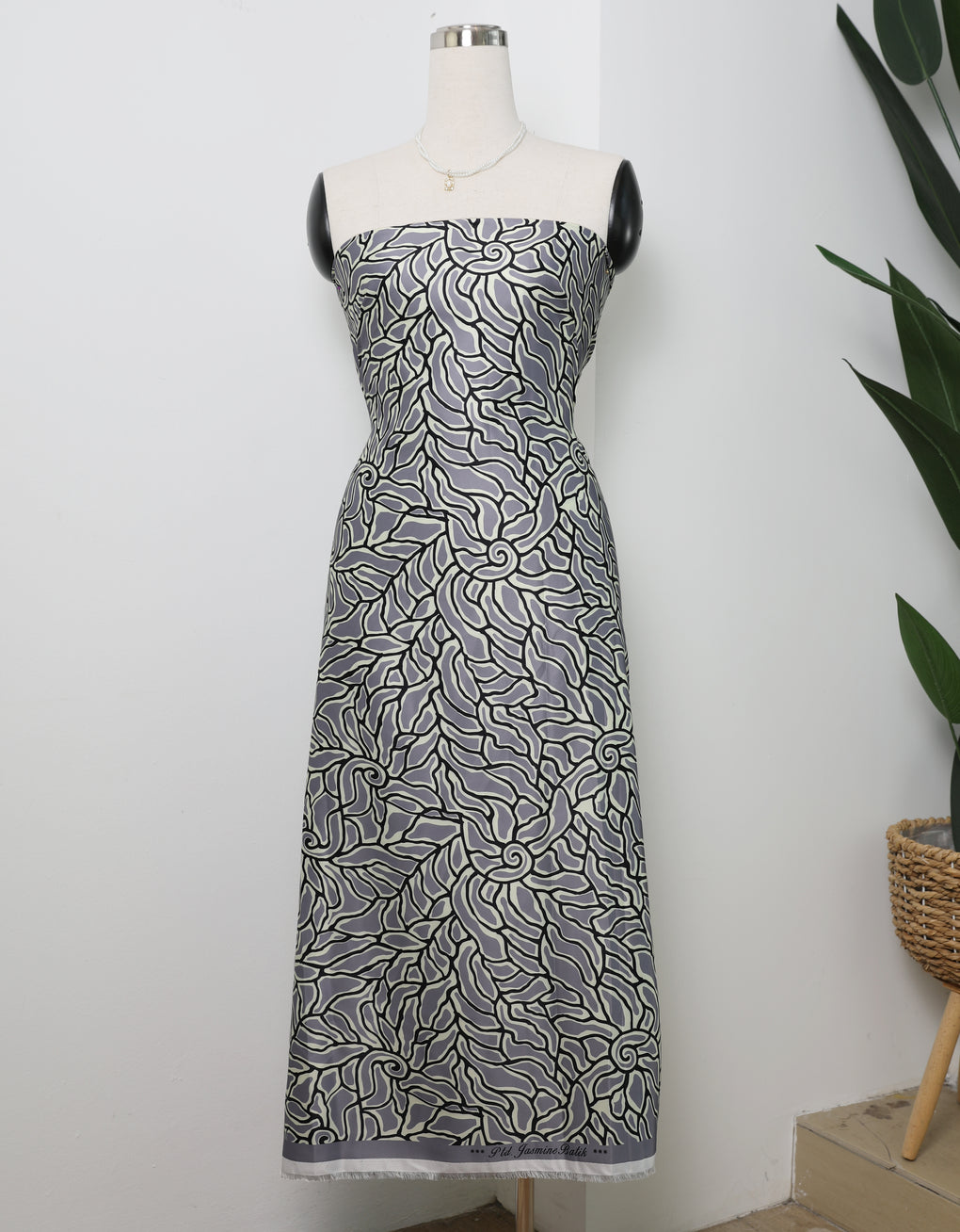 Jasmine Satin is a fabric that come in exclusive floral patterns and abstract. It is very comfy, breathable, and not transparent. This satin has a good of durability and drapability. It has a flowy drape that works well especially for garment sewing.