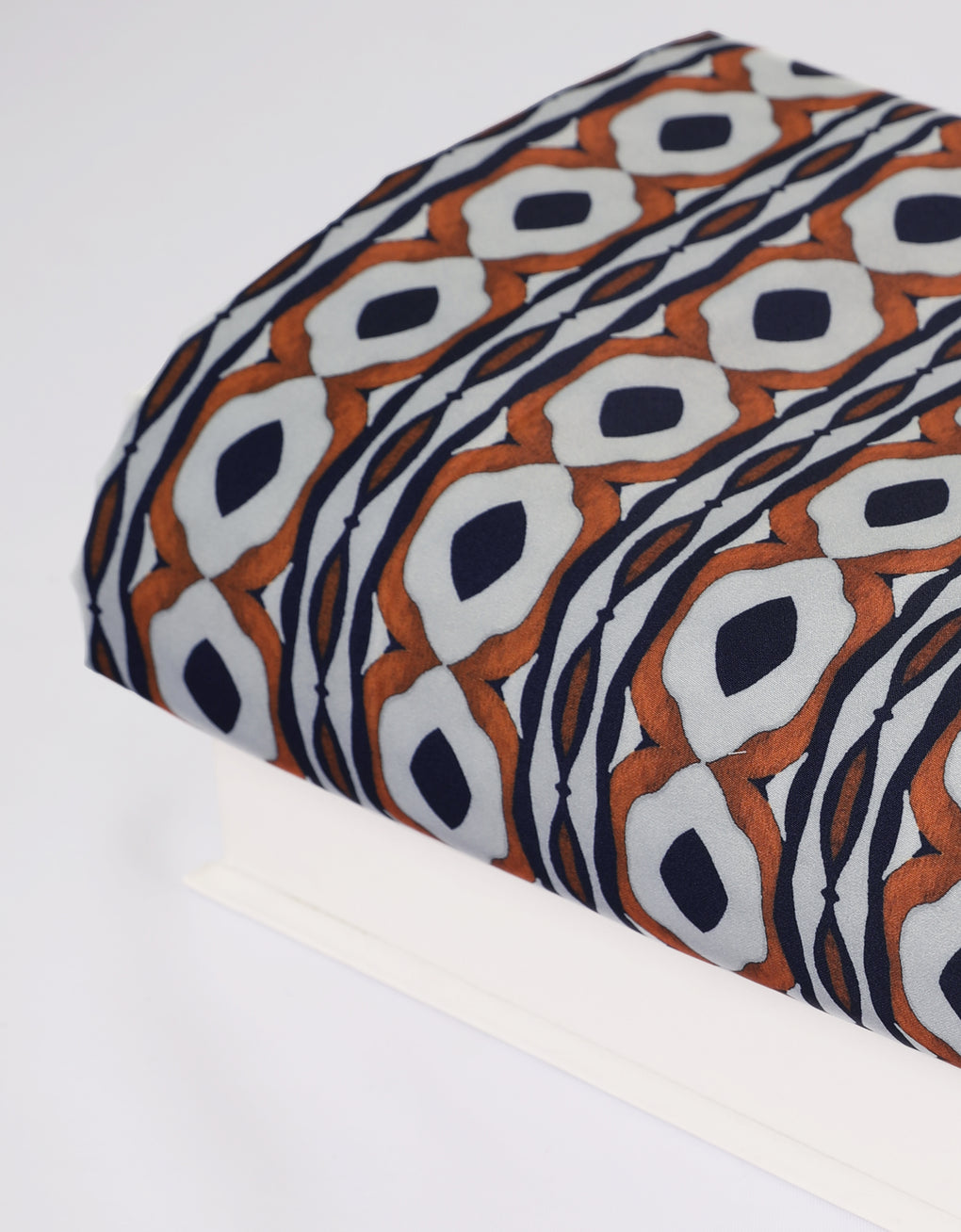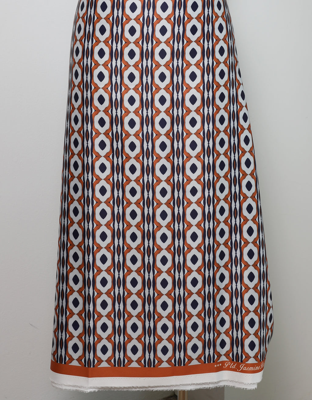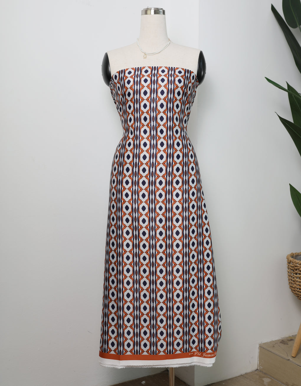 Jasmine Satin is a fabric that come in exclusive floral patterns and abstract. It is very comfy, breathable, and not transparent. This satin has a good of durability and drapability. It has a flowy drape that works well especially for garment sewing.