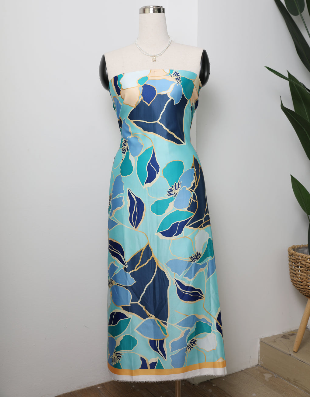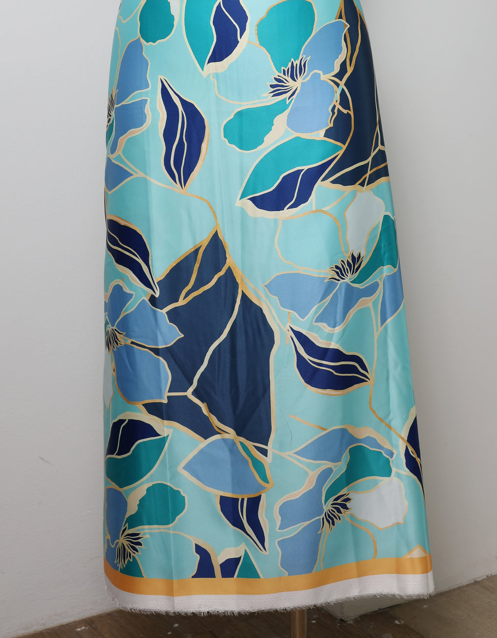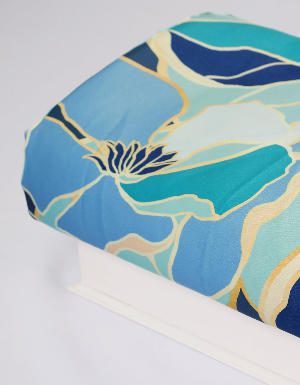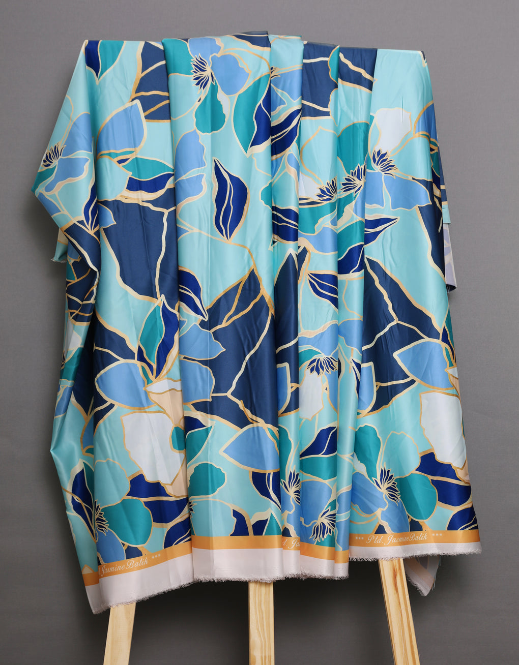 Jasmine Satin is a fabric that come in exclusive floral patterns and abstract. It is very comfy, breathable, and not transparent. This satin has a good of durability and drapability. It has a flowy drape that works well especially for garment sewing.