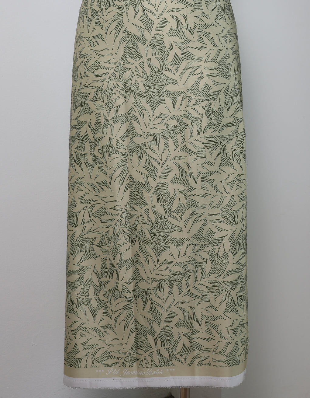 Jasmine Satin is a fabric that come in exclusive floral patterns and abstract. It is very comfy, breathable, and not transparent. This satin has a good of durability and drapability. It has a flowy drape that works well especially for garment sewing.