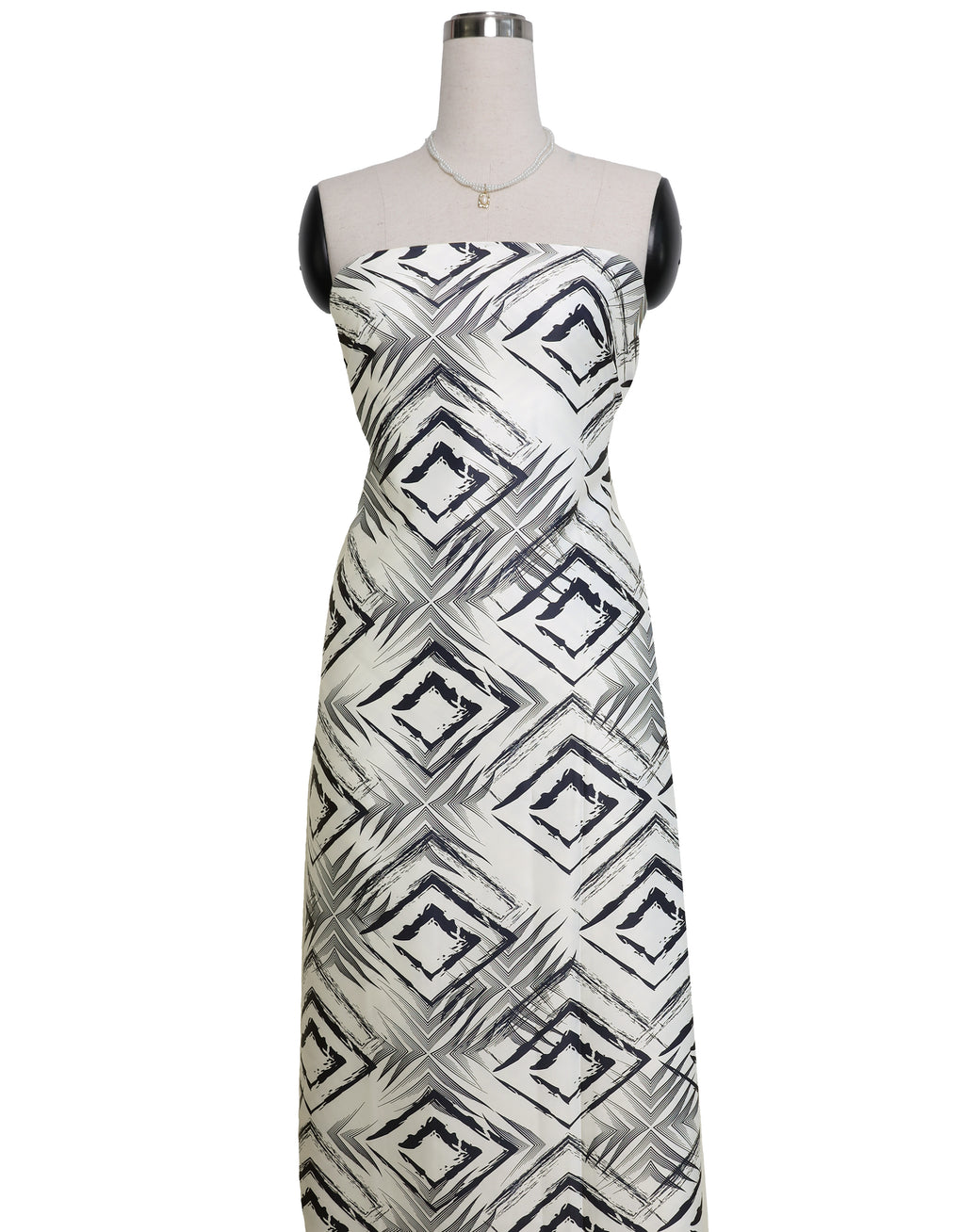LIORA SATIN - 4 METERS (OFF WHITE + NAVY BLUE)