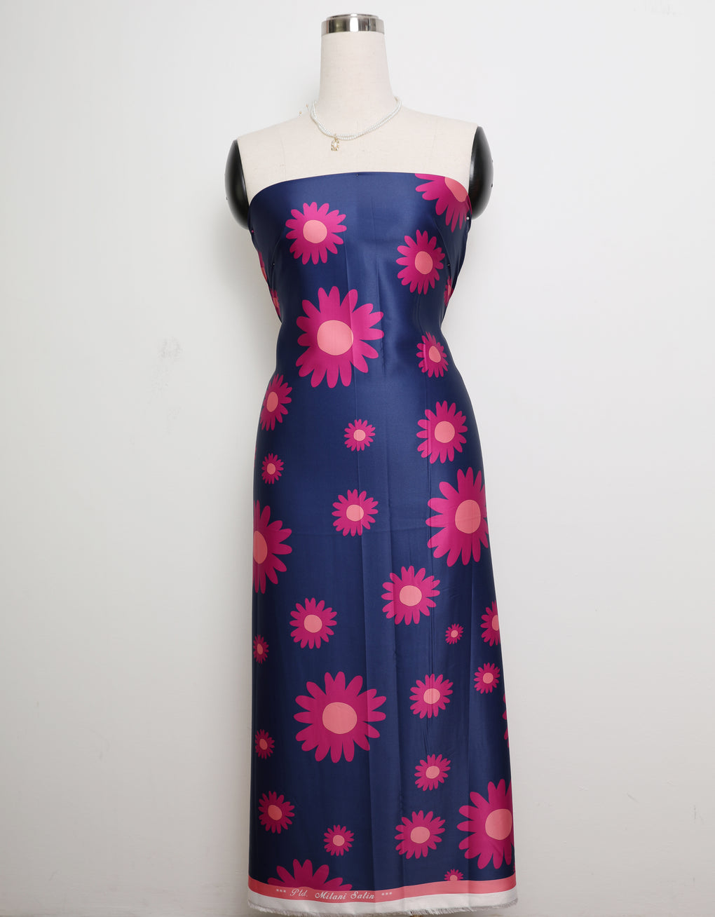 Milani Satin is a fabric that come in exclusive floral patterns and abstract. It is very comfy, breathable, and not transparent. This satin has a good of durability and drapability. It has a flowy drape that works well especially for garment sewing.