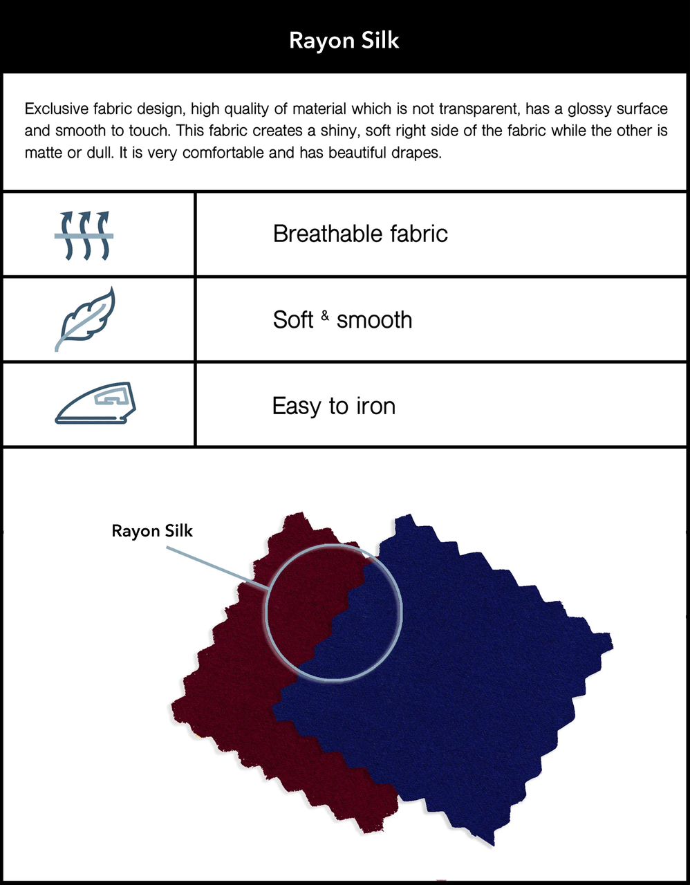 This printed Rayon Silk is the best quality that you can find at Malaysia market. It’s  delicate with a luxurious look and has a very smooth texture. It fits perfectly on the figure, emphasizing the attractiveness of its shape.