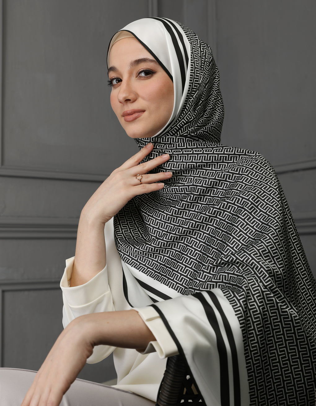Wrap yourself up in a luxuriously soft and made from high-quality satin, this shawl features a stunning abstract design that will elevate any outfit. Stay stylish and comfortable with the Itzy shawl.