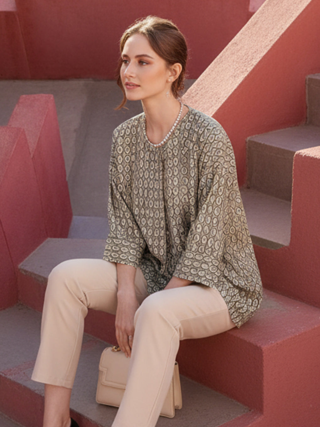 Introducing the YURI TOP the perfect addition to elevate your wardrobe. This oversized top is made with premium shantung crepe fabric, offering a luxurious cotton feel with a soft touch. Two front pockets add style and convenience, making it suitable for any occasion. Stay comfortable and chic with this expertly crafted and sophisticated top.