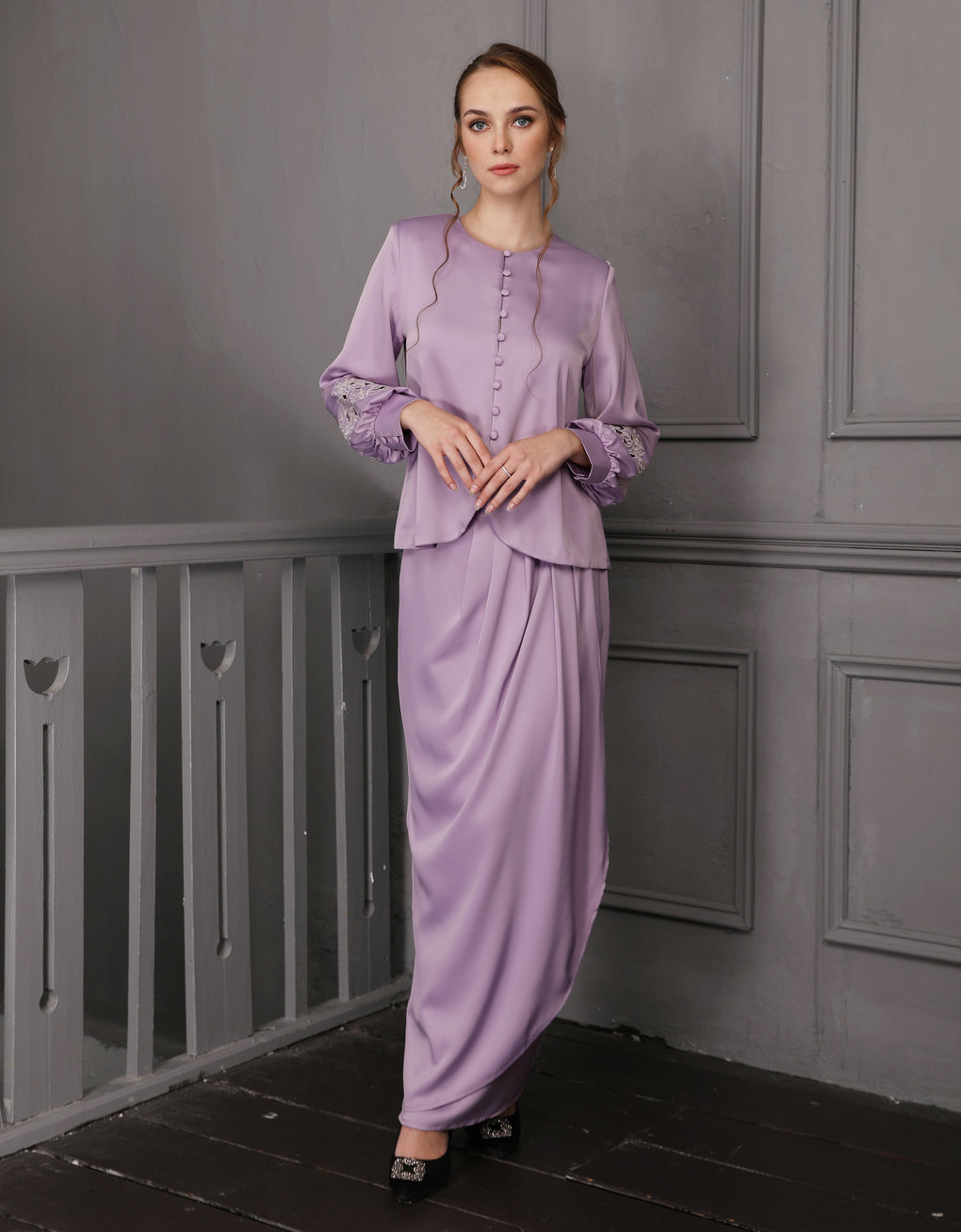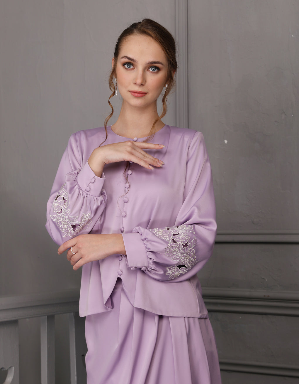 Experience sophistication and finesse with our petite collection BAJU KURUNG KEDAH MODEN ESTEE outfit. Its round neckline is embellished with 'butang bungkus' for a touch of elegance, while delicate embroidered sleeve cuff adds a sweet touch. Elevate your style game with this charming dress.