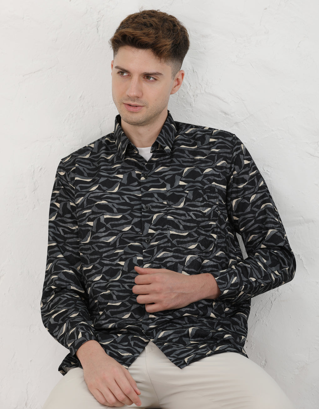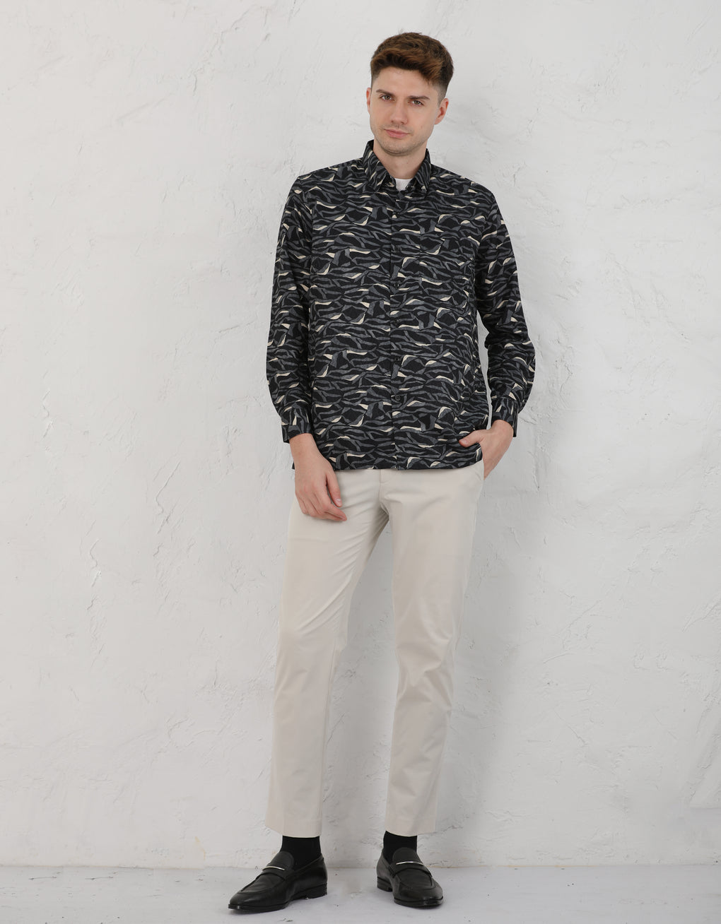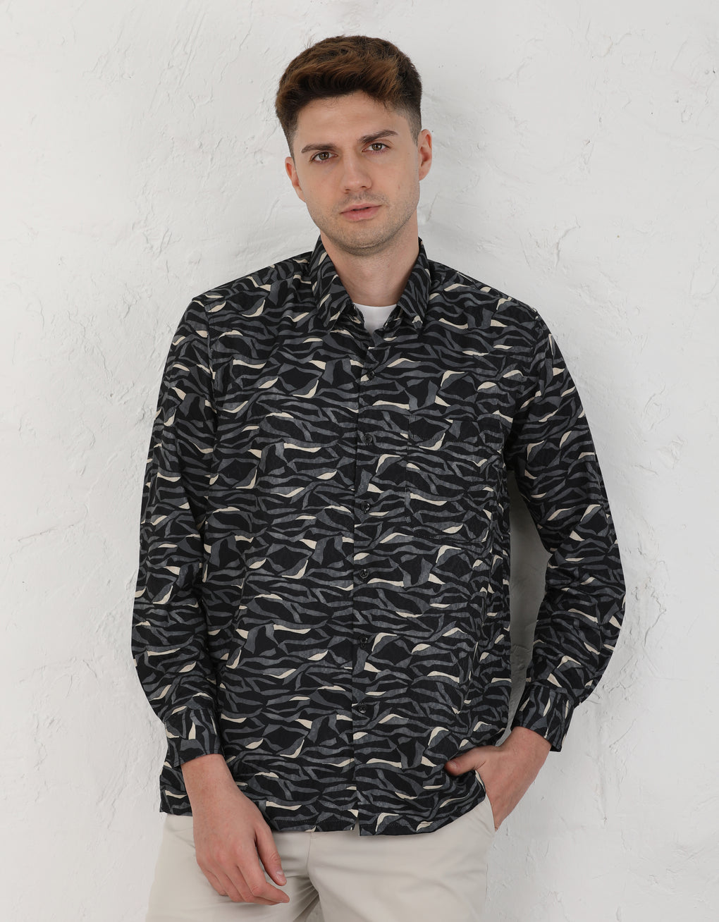 Regular fit collar shirt with long sleeves and button fastening on the front.