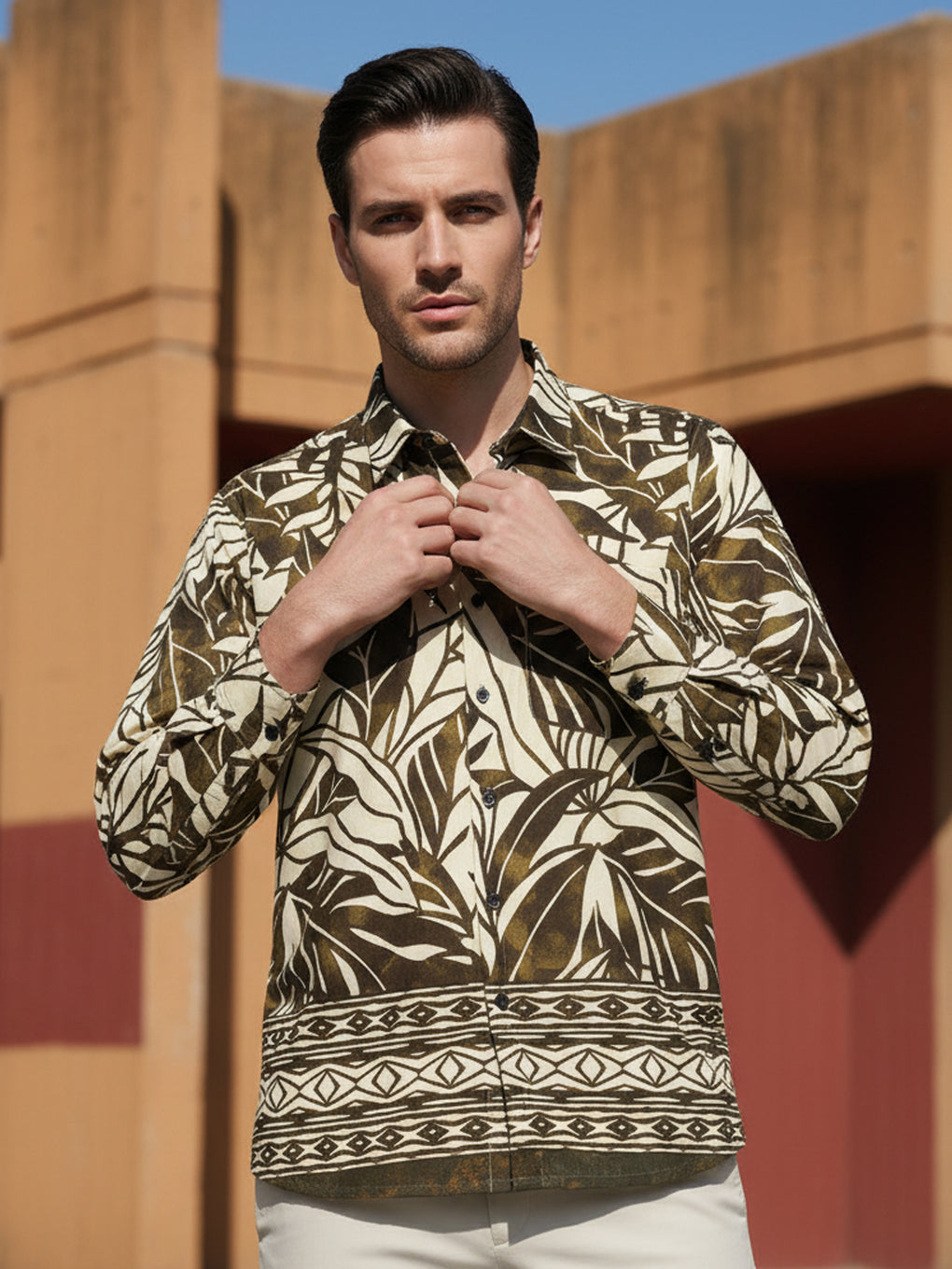 Regular fit collar shirt with long sleeves and button fastening on the front.