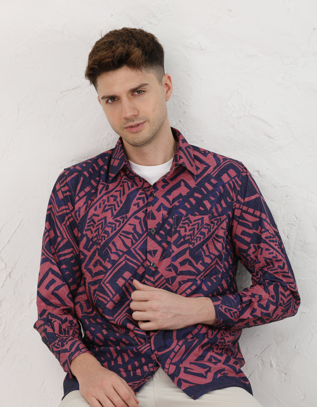 Regular fit collar shirt with long sleeves and button fastening on the front.